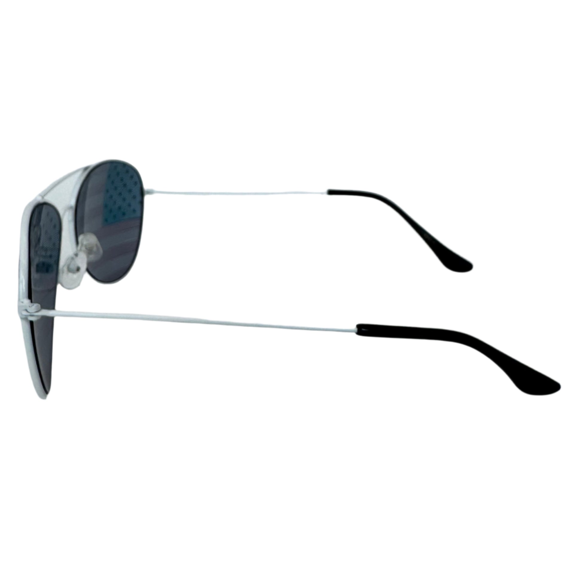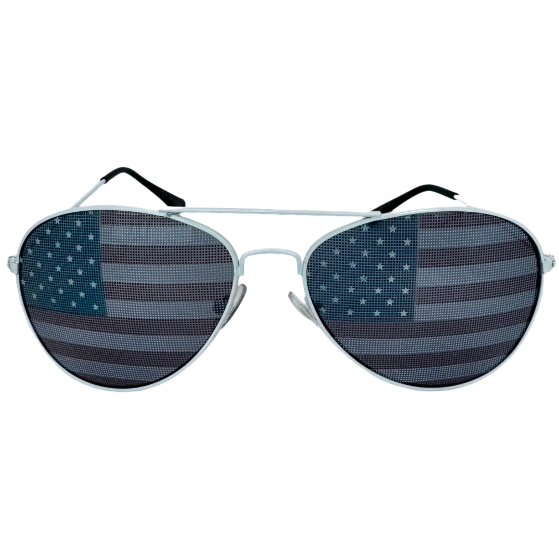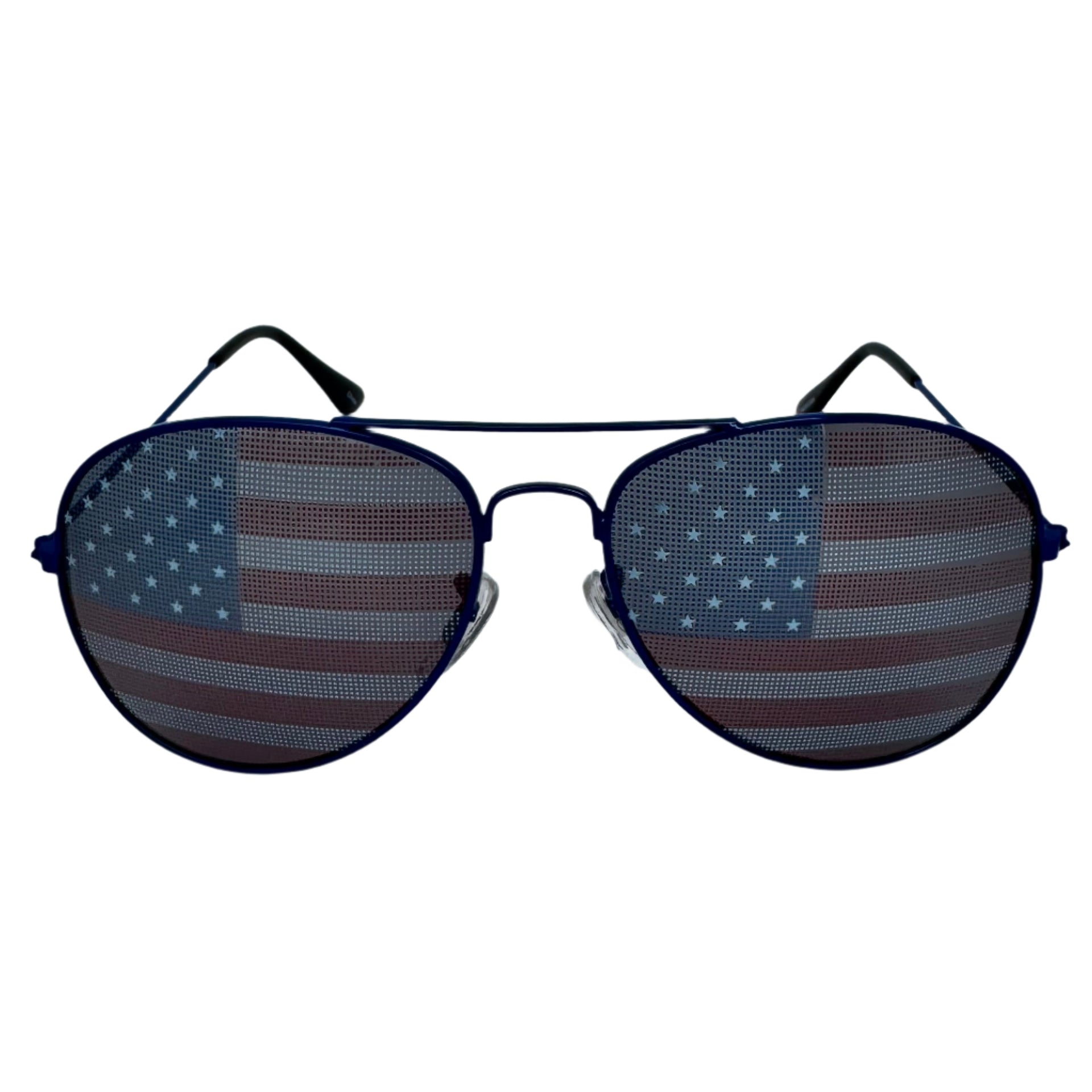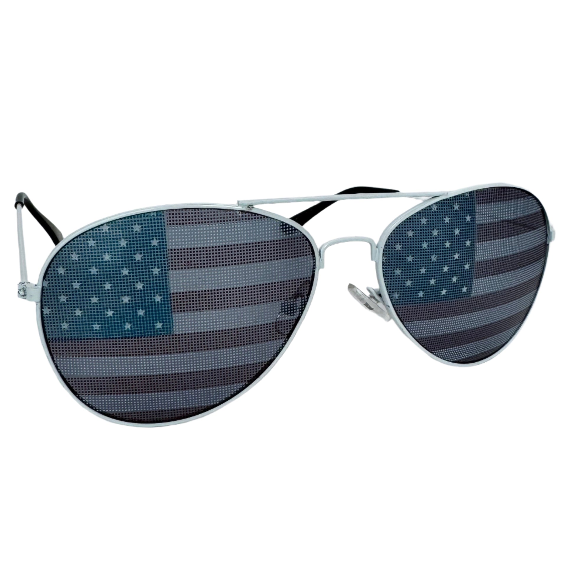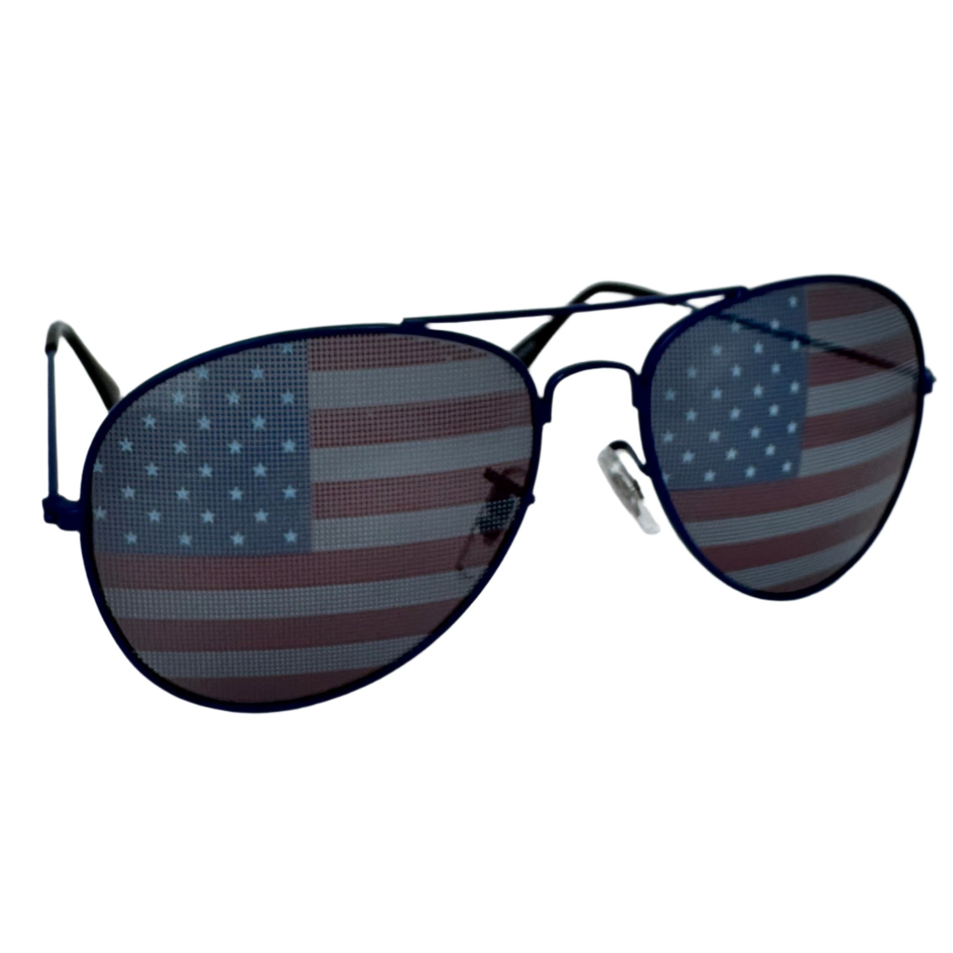 Get ready to show off your patriotic side with these stylish American Flag Aviator Sunglasses! With 100% UV protection, adjustable nosepads, and a classic aviator style, you'll want to wear these everywhere. (Disclaimer: novelty use only, but no one will notice when you look this cool!)