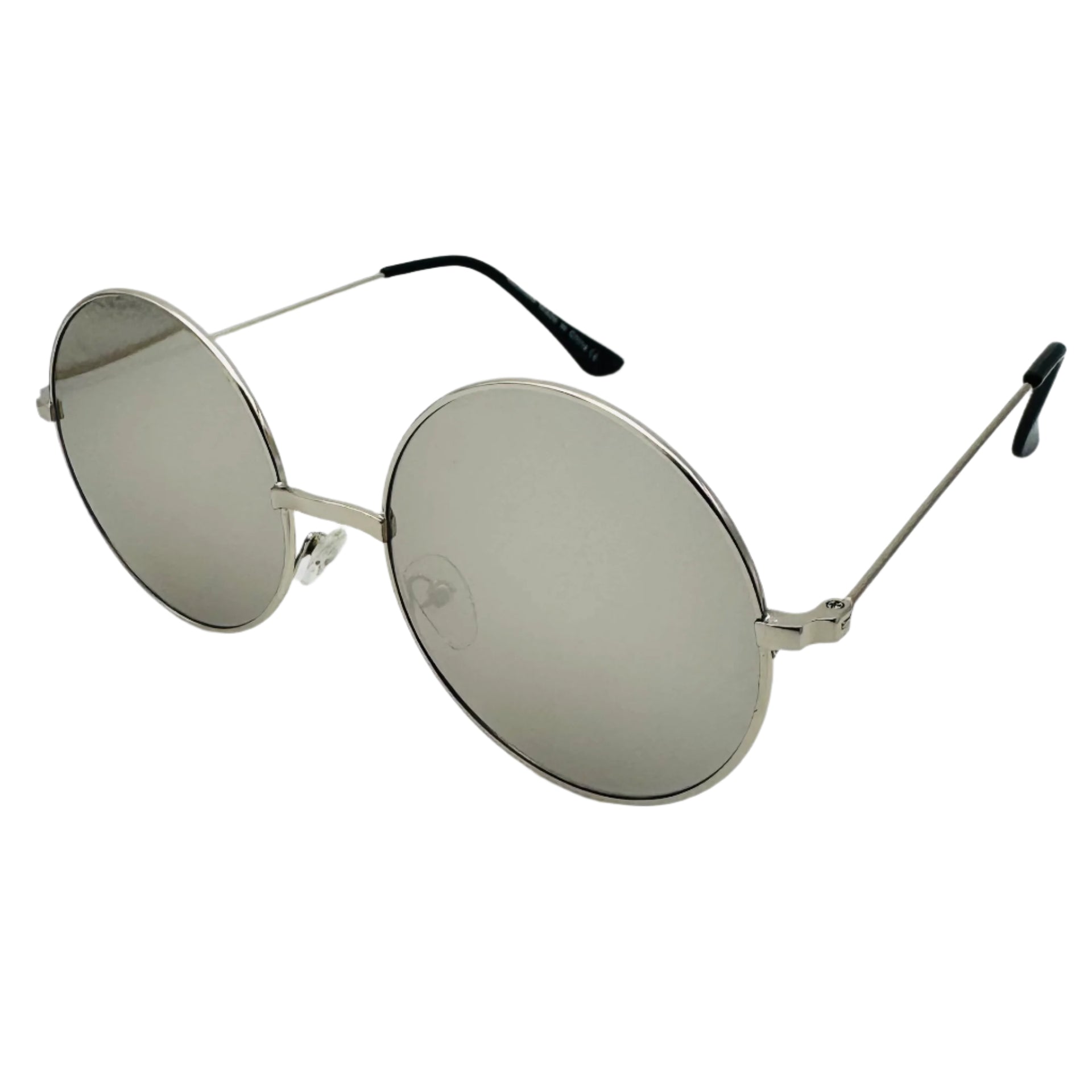 The round lenses and silver mirror tint provide a retro and luxurious touch, while the adjustable nose pads ensure a comfortable fit. Plus, with 100% UV protection, your eyes will be safe and stylish.