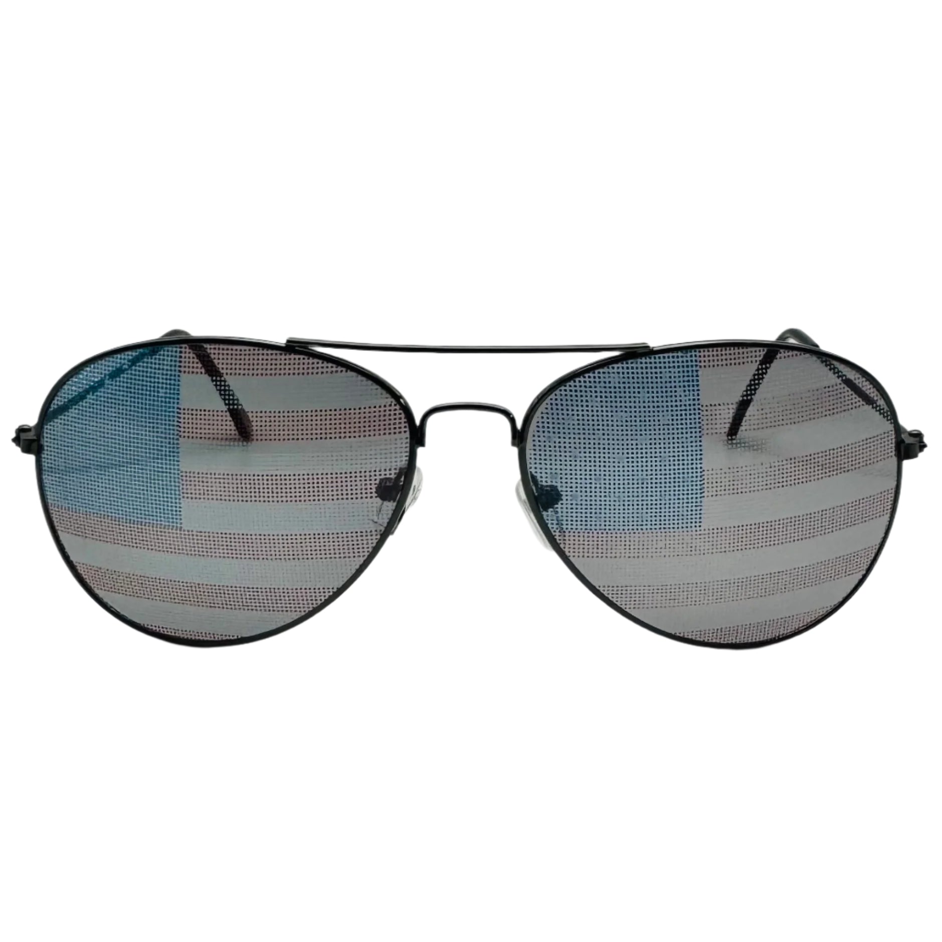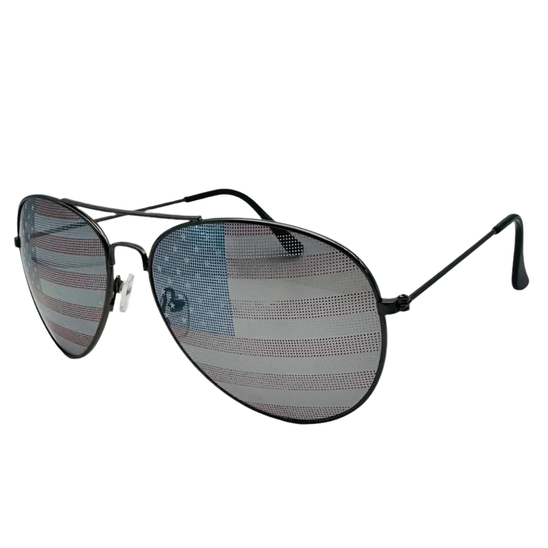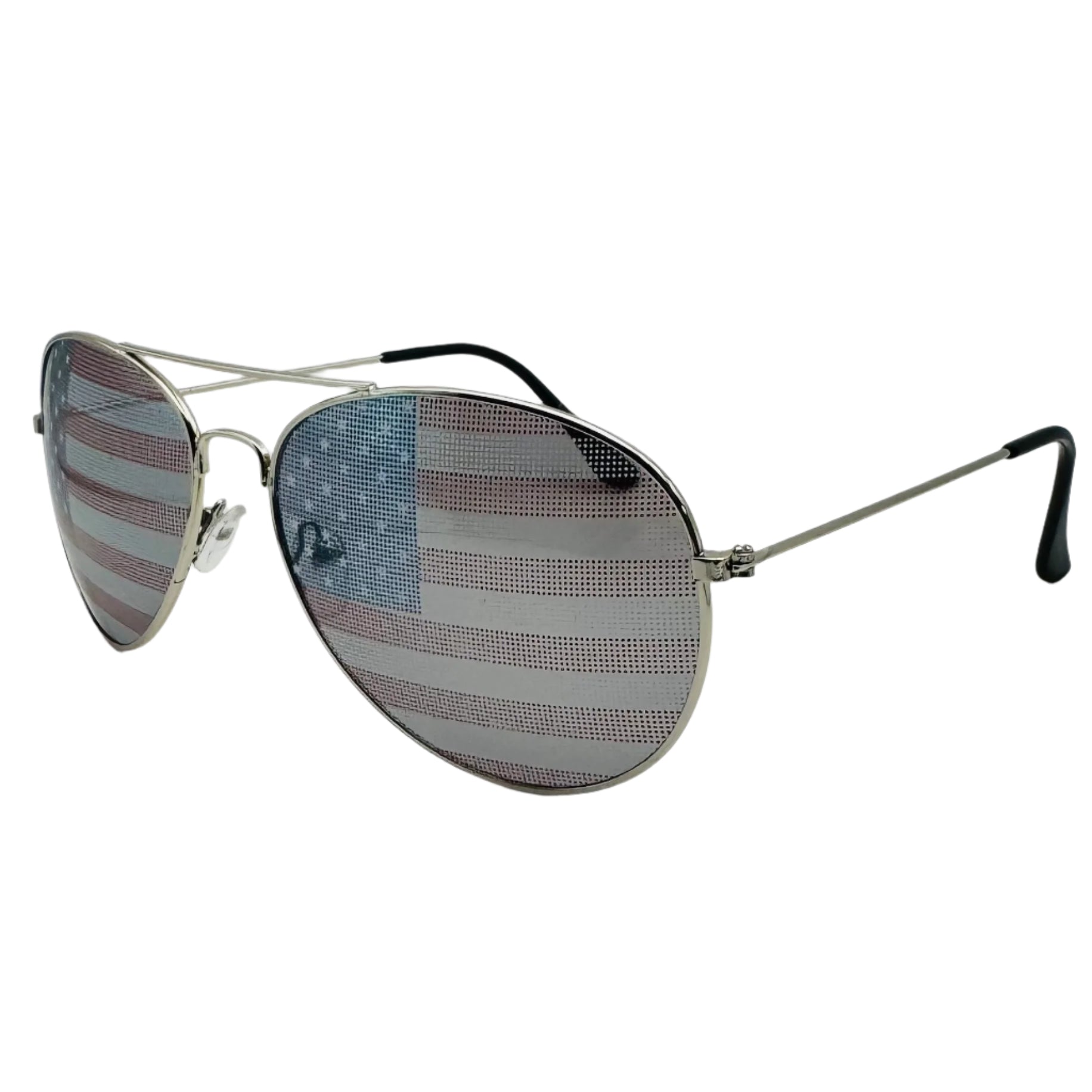 Get ready to show your patriotic side with these American Flag Heart Aviator Sunglasses! Featuring a unique flag design on the lenses, these novelty glasses add a playful touch to any outfit. Perfect for your 4th of July celebration or any summer event. (USA! USA!)