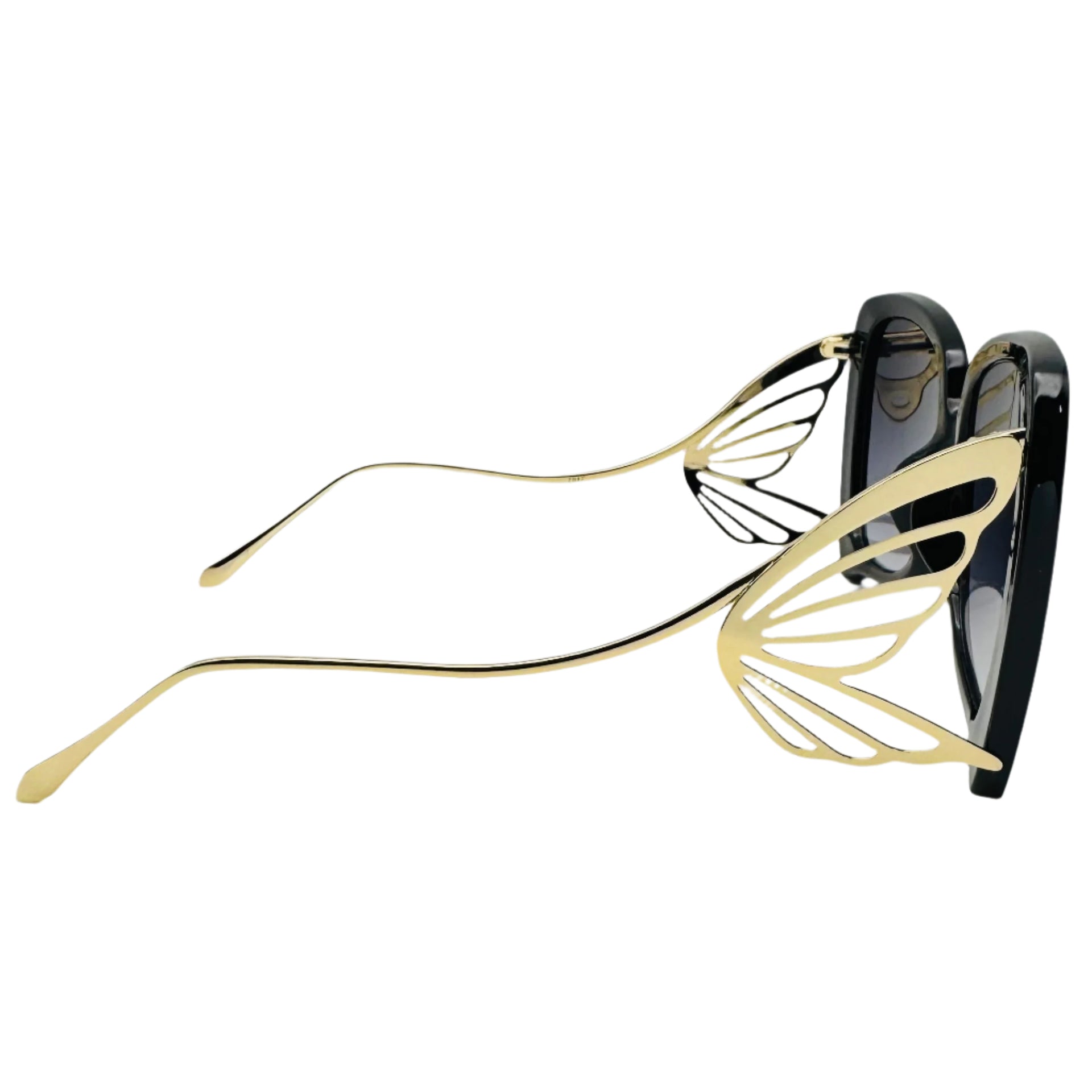These sexy shades feature large lenses and wing accented arms for maximum impact. Plus, with 100% UV protection and gradient tinted lenses, you'll not only look amazing, but also protect your eyes from harmful rays.