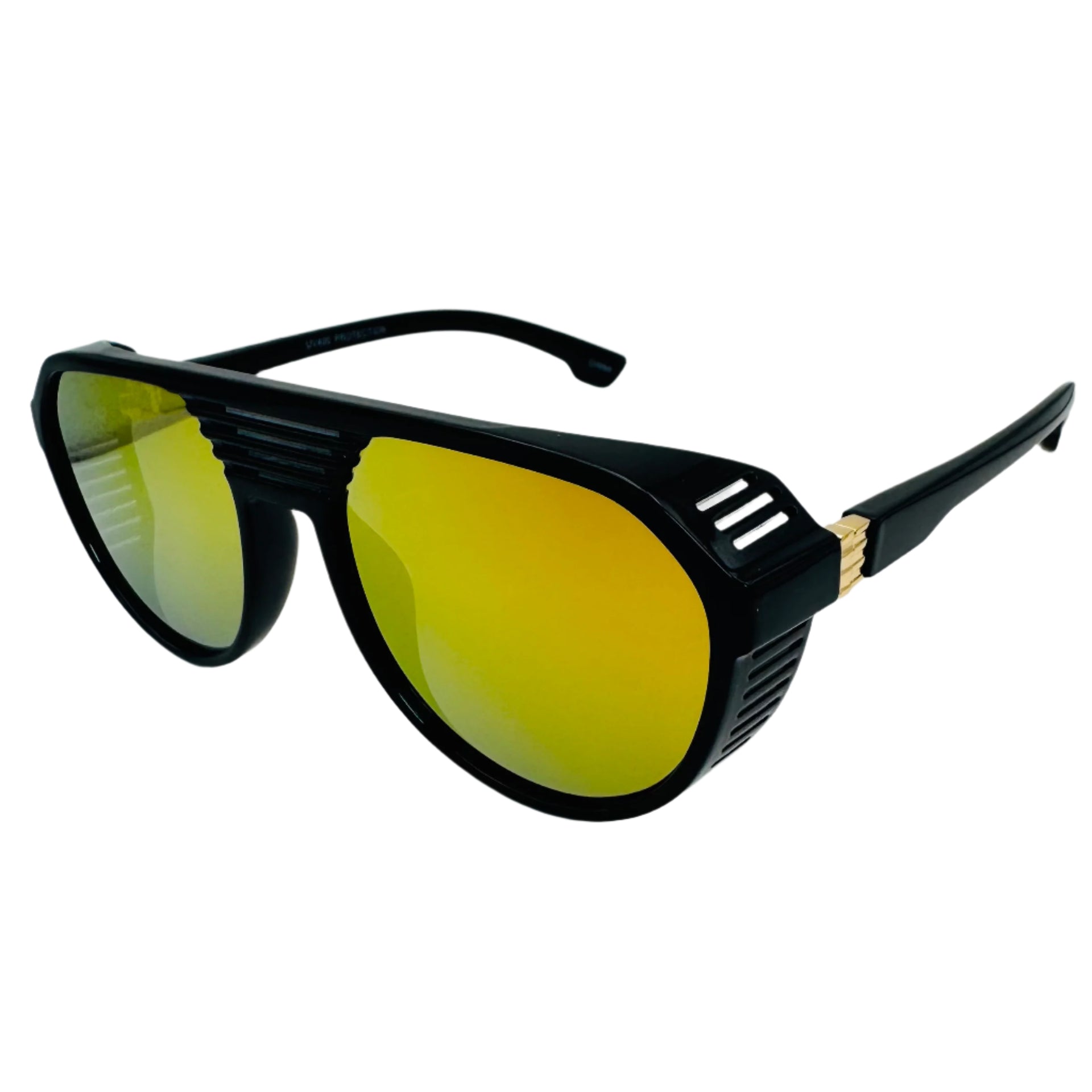 Featuring mirrored lenses and metal accents, these sunglasses offer both style and protection with 100% UV protection. Dive into adventure with these bold and daring sunglasses that are perfect for anyone who loves taking risks!