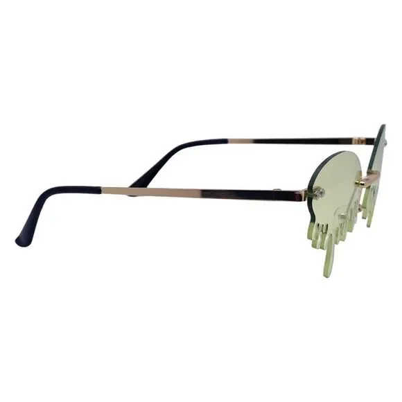 Take a bold step into the unknown with our 6071 Drip Rimless Novelty Sunglasses. These unique sunglasses feature rimless lenses with a trendy drip-style design, providing both fashion and function with 100% UV protection. Unleash your adventurous side and stand out from the crowd with these unisex sunglasses.