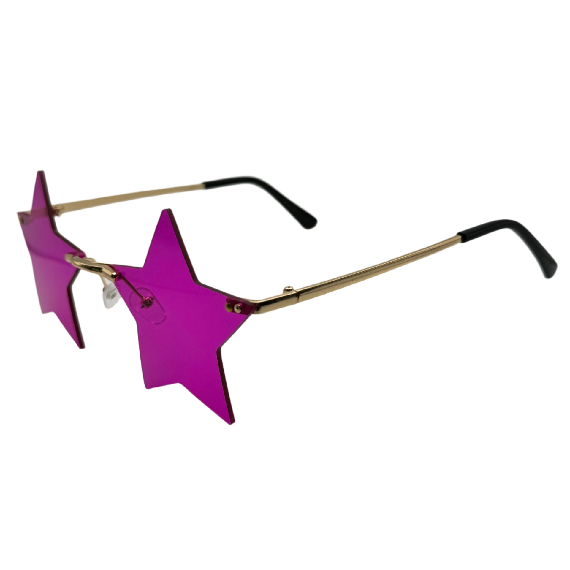 Unleash your star power with our Rimless Star Novelty Sunglasses. These quirky sunglasses feature star-shaped lenses and a rimless design, perfect for making a statement. The color tinted lenses provide 100% UV protection, making them both stylish and functional. Embrace your inner star with these fun novelty sunglasses!