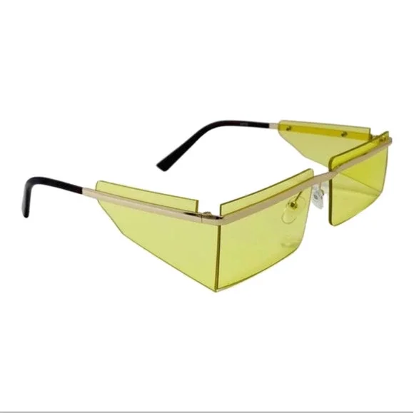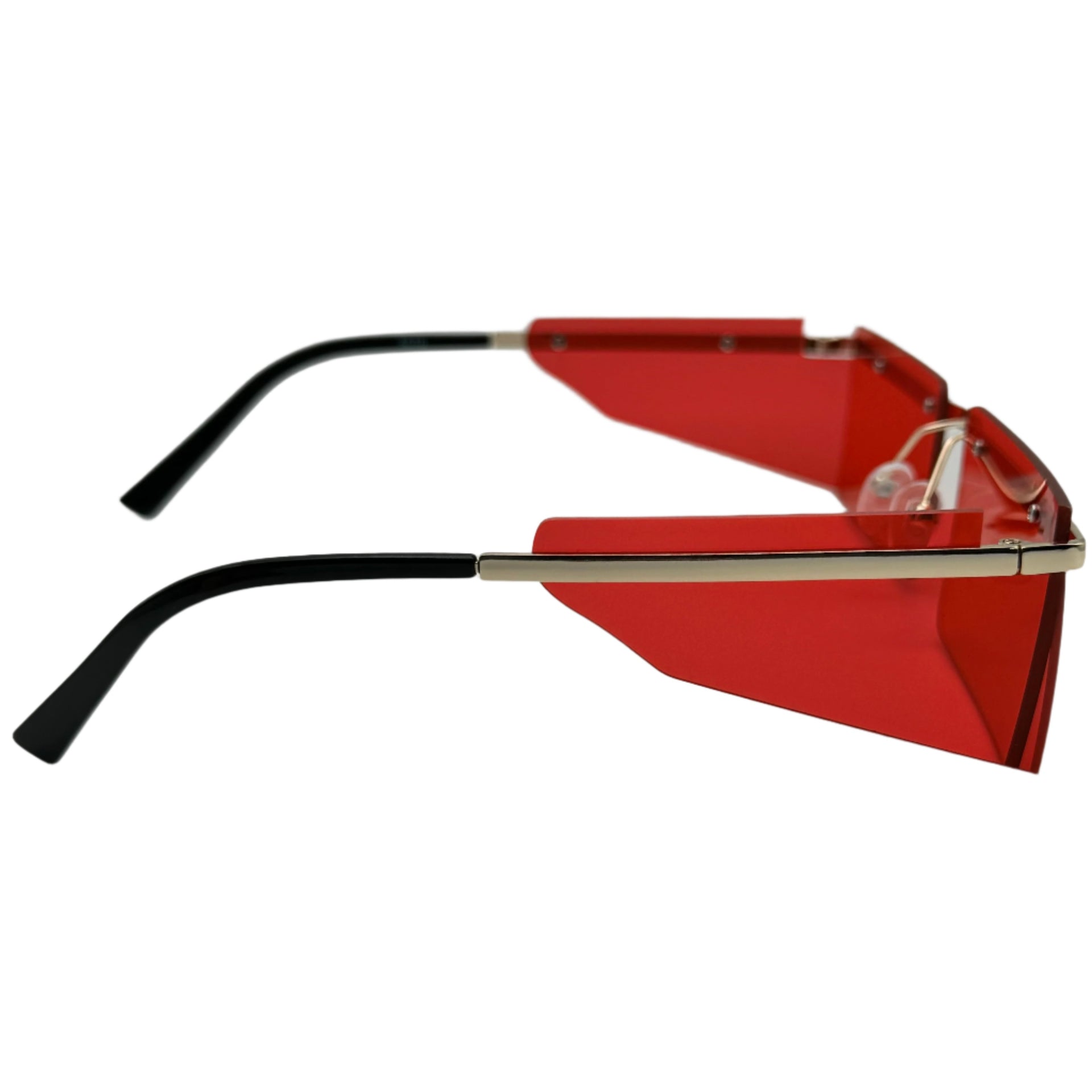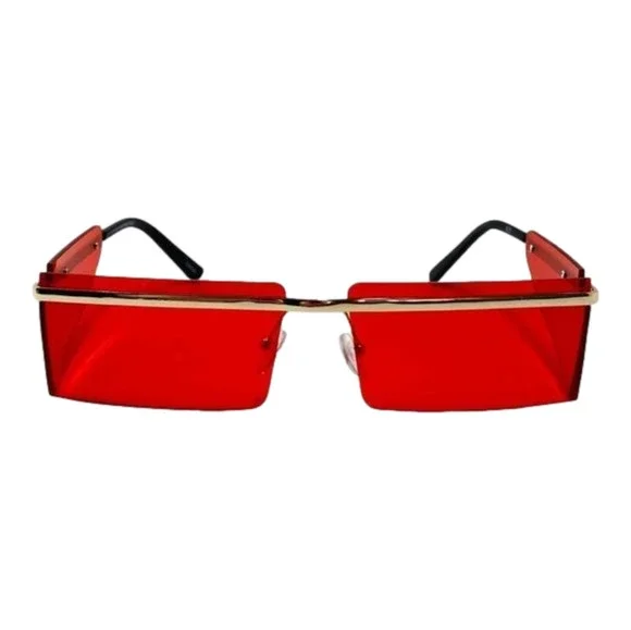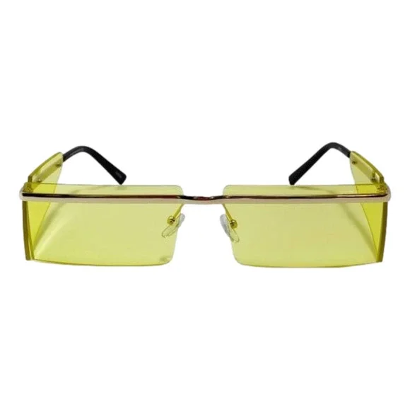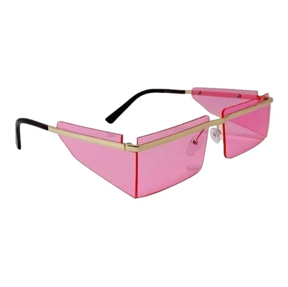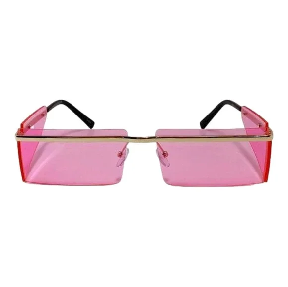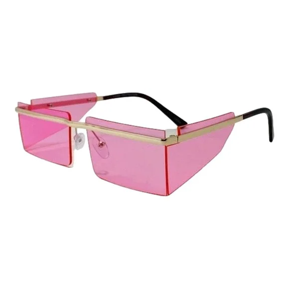 These rimless rectangle sunglasses with side blinders are the ultimate combination of style and functionality. The color tinted lenses not only add a pop of color to your look, but also provide 100% UV protection. The adjustable nose pads ensure a comfortable fit for all-day wear. Get them now at clearance prices!