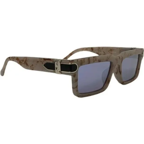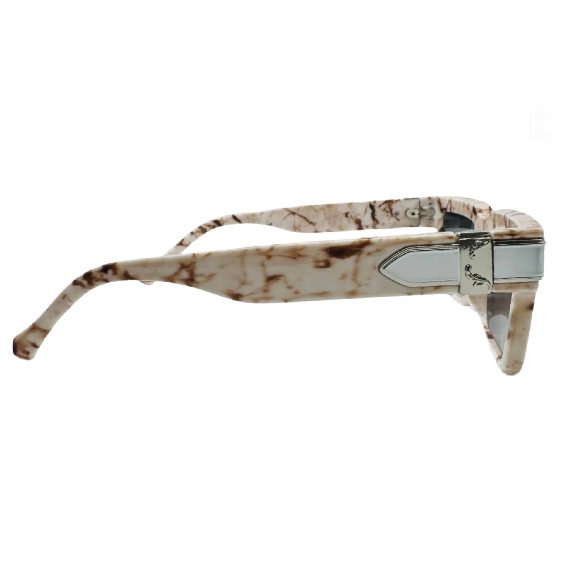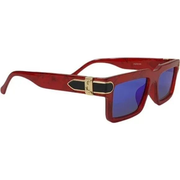 Introducing our Fashion Sunglasses with Accented Temples. Embrace the sophistication and luxury with these sleek sunglasses featuring semi square lenses, accented temples, and a thick frame. Keep your eyes protected while making a statement with 100% UV protection. Upgrade your style game with these exclusive shades.