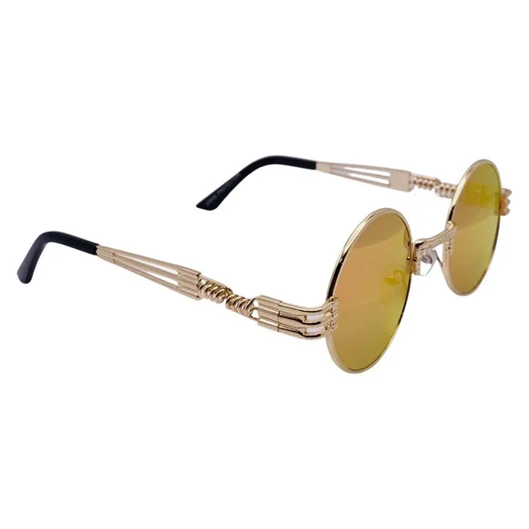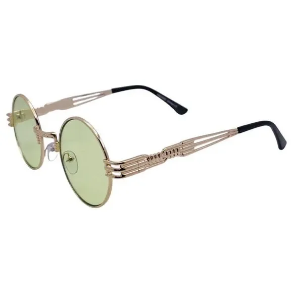 Introducing the quintessence of avant-garde aesthetics and timeless elegance: Our Round Steampunk Sunglasses, artfully adorned with Spring Accents. These sunglasses are not just accessories; they are a bold statement of individuality and pioneering spirit. Crafted with meticulous attention to detail, the frames boast a unique round design, reminiscent of the daring steampunk era, complemented by intricately placed spring accents that elevate the look from mere eyewear to a piece of wearable art. The spring accents not only add a layer of allure but also embody the fusion of vintage charm and modern innovation. These sunglasses offer optimal protection against the sun's rays, ensuring clarity of vision and comfort, without compromising on style. Whether you're an aficionado of the steampunk genre or a trendsetter looking to stand out from the crowd, these sunglasses are your gateway to an unparalleled fashion statement. Embrace the essence of sophistication and innovation. Make them yours today and see the world through a lens of exceptional style and quality.