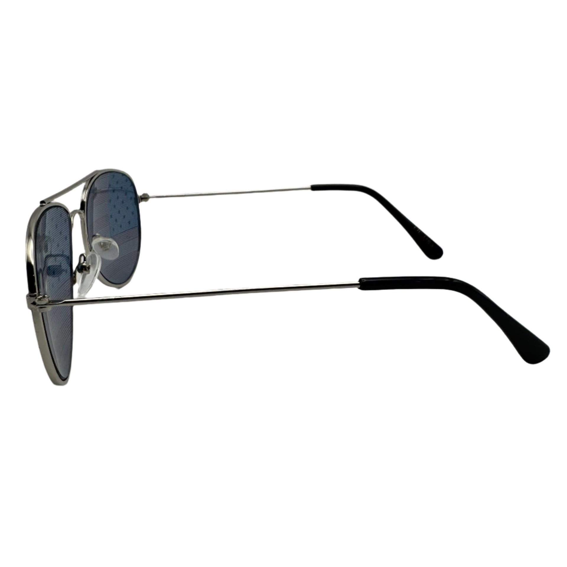 Get ready to show your patriotic side with these Kids American Flag Aviator Sunglasses! Featuring a unique flag design on the lenses, these novelty glasses add a playful touch to any outfit. Perfect for your 4th of July celebration or any summer event. (USA! USA!)