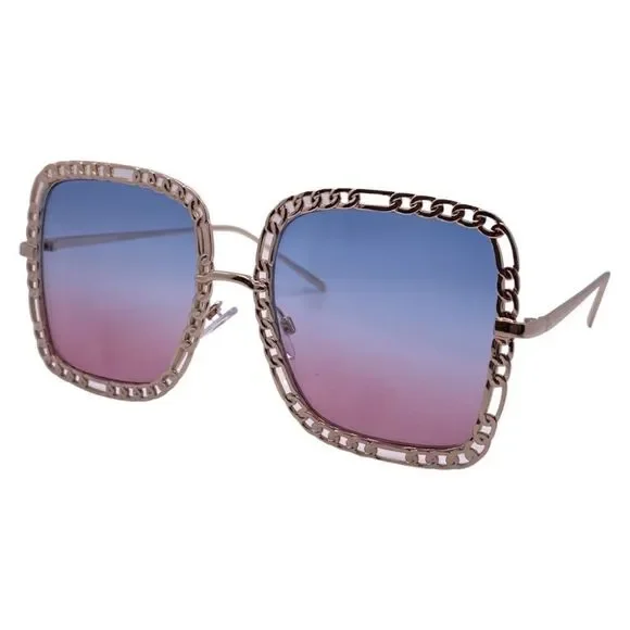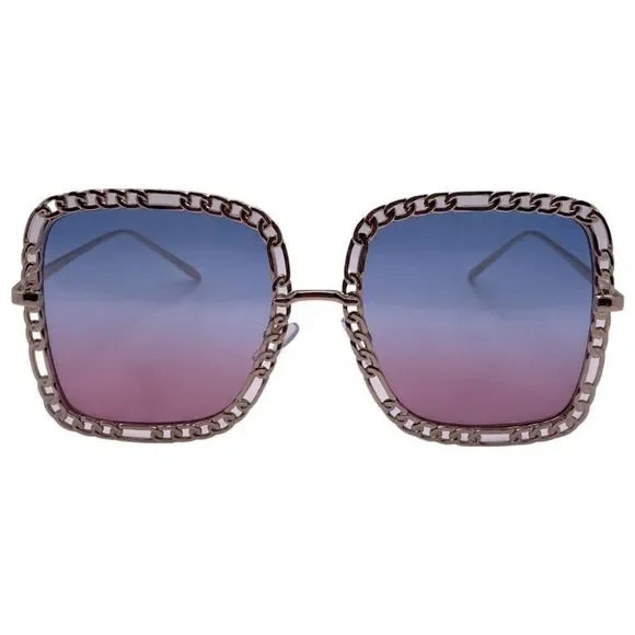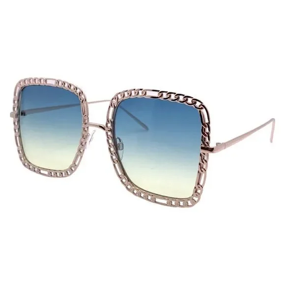 (C) 6162 | Chain Accented Large Two Tone Sunglasses