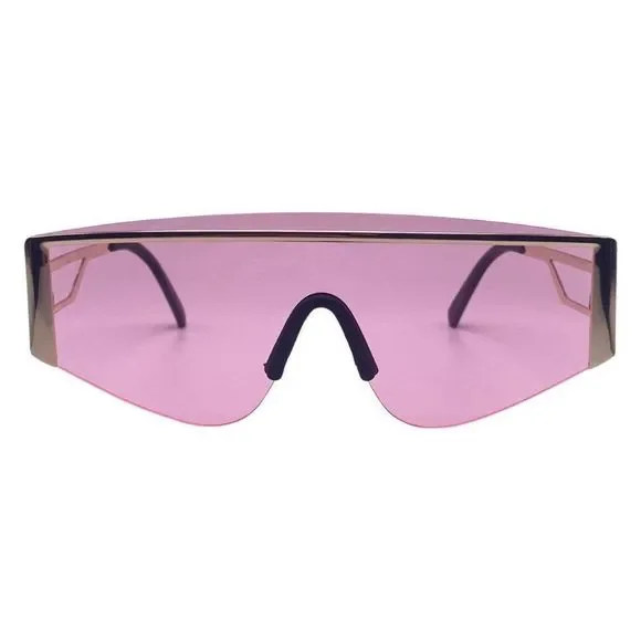 Elevate your style with our semi-rimless shield sunglasses. Experience full UV protection in a sleek shield style with color tinted lenses. The semi-rimless design and adjustable nose pads add both comfort and luxury to these must-have shades. Enjoy sophistication and protection in one.