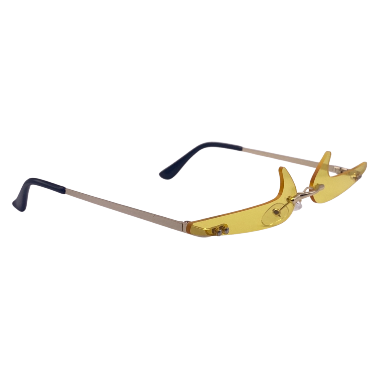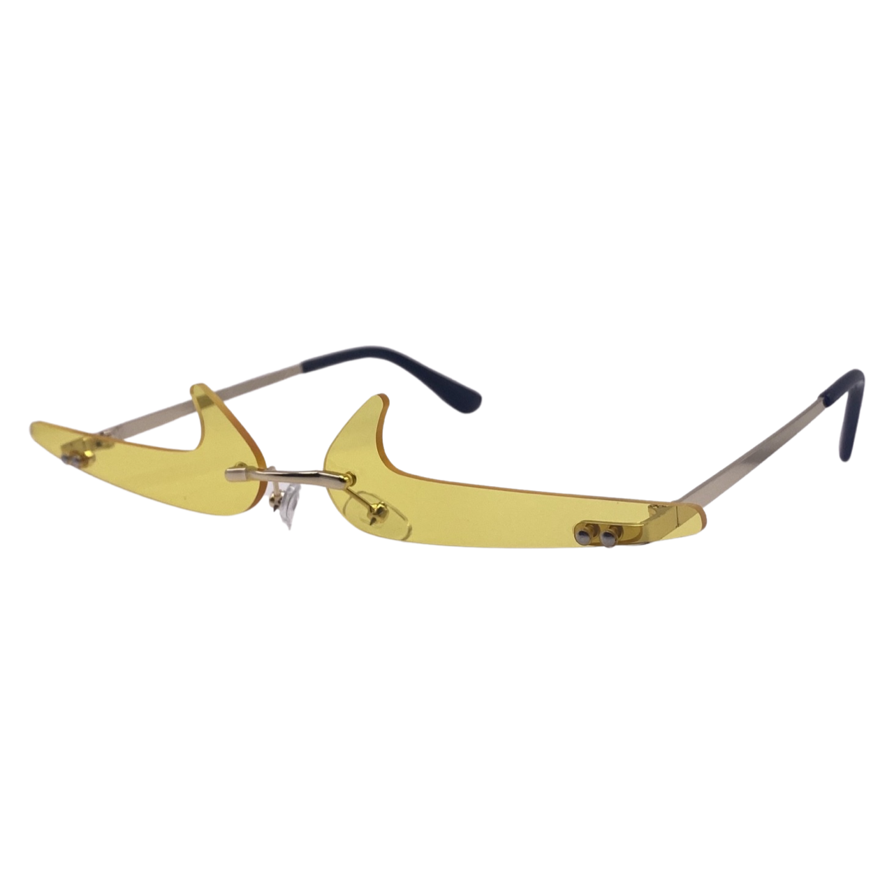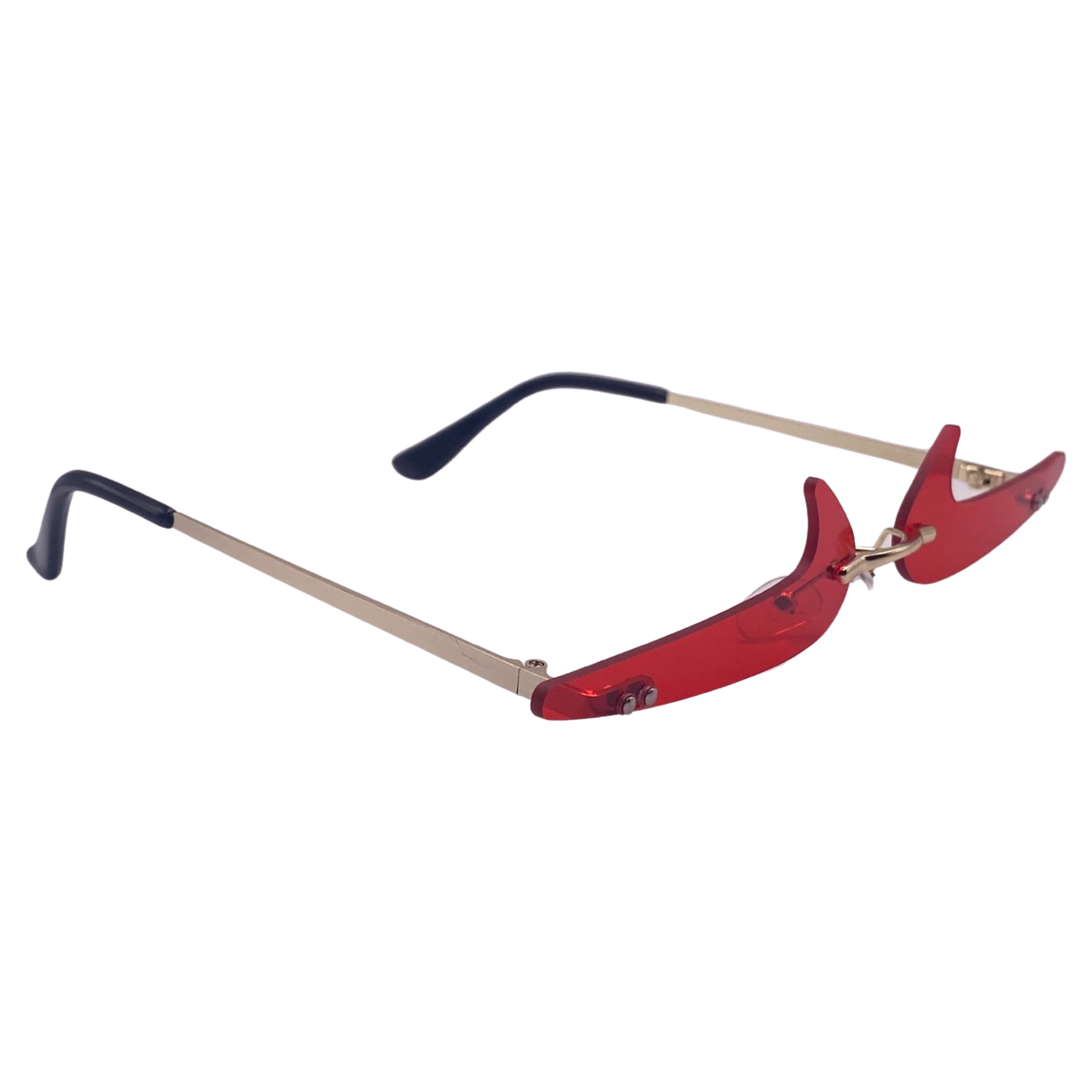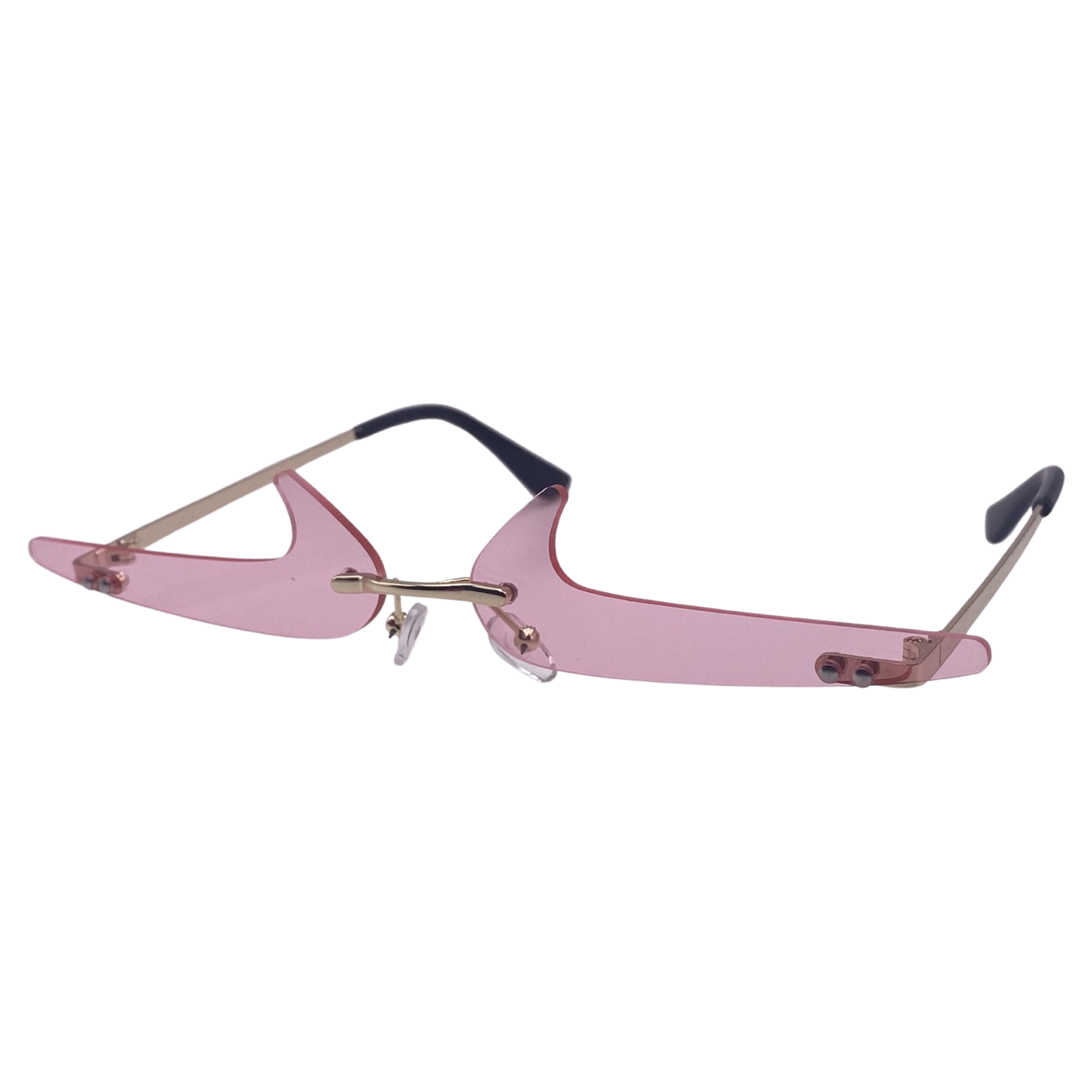Elevate your Halloween look with our Rimless Sunglasses! Featuring a backwards checkmark design, these novelty sunglasses are adjustable with nose pads for a comfortable fit. Make a statement with this unique and fun accessory. Now on clearance for a limited time!