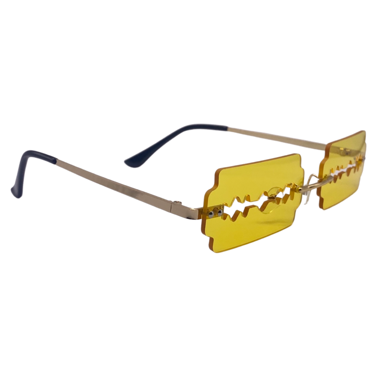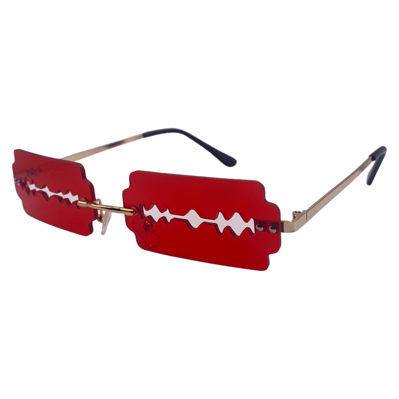 Get ready to slash through the fashion scene with Razor Novelty Sunglasses! These razor-style lenses come in a variety of color-tinted options and include adjustable nose pads for the perfect fit. With 100% UV protection, you can rock these sunglasses all year long, including for Halloween! Add some edge to your style with these unique shades. (Note: Hurry, limited stock - grab a pair before they're gone!)