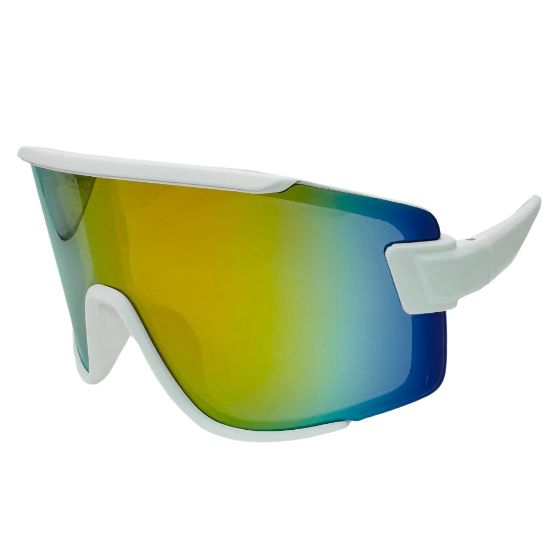 Upgrade your sports eyewear with our Sport Wrap Sunglasses. The mirrored shield lens provides 100% UV protection while the wrap style and color accents add a stylish touch. Stay protected and look your best on the field or court.