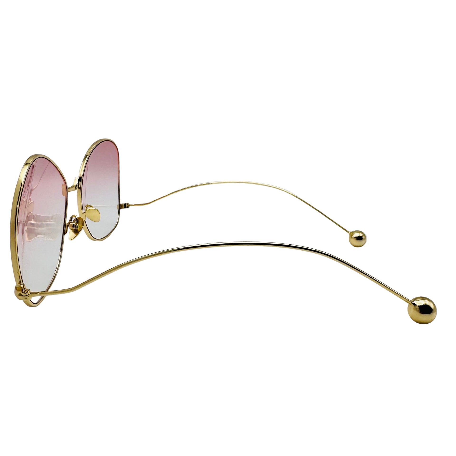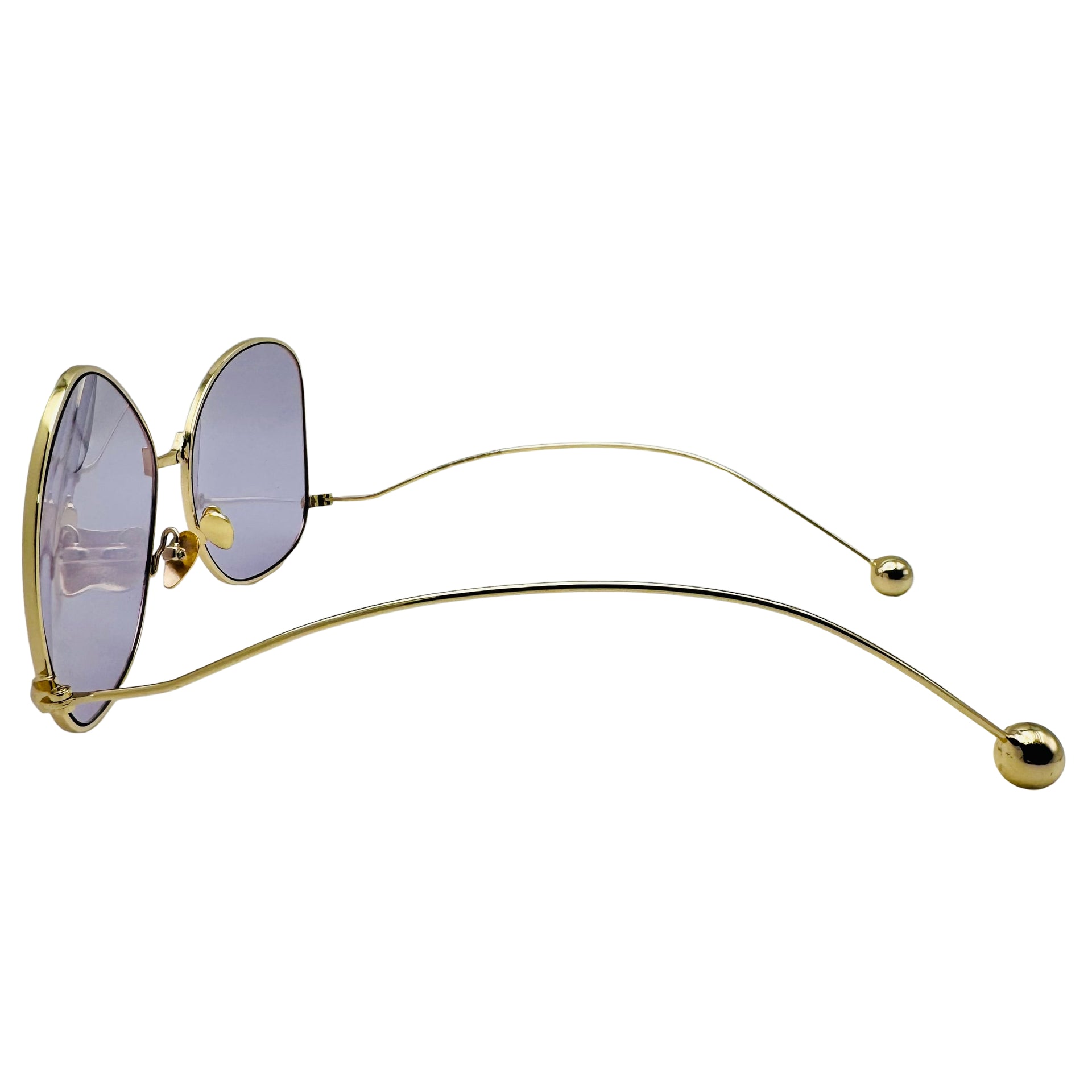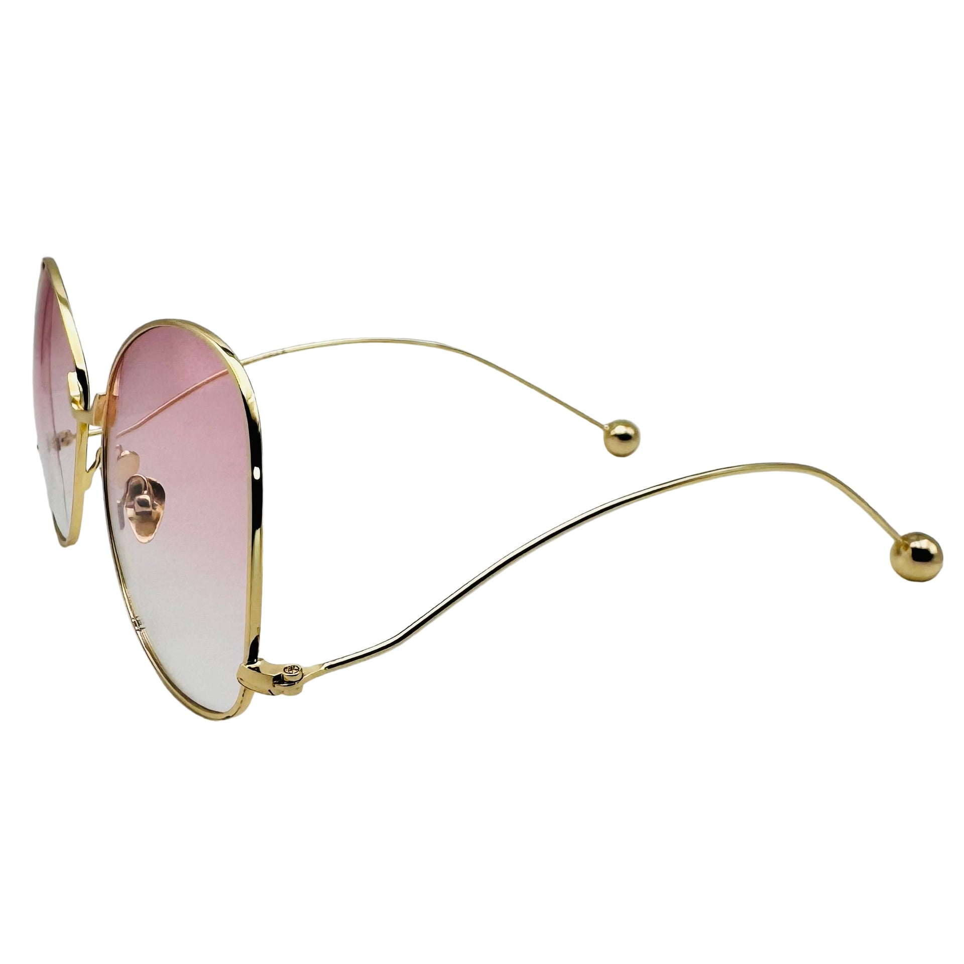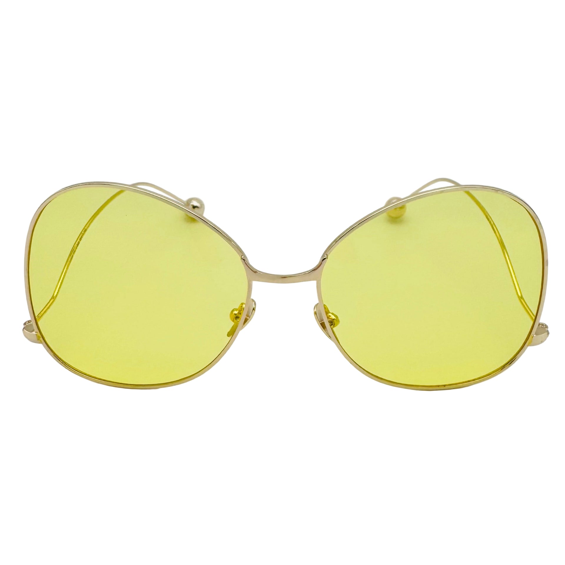 Step out in style with these butterfly-shaped sunglasses featuring vibrant color tinted lenses that add a pop of fun to any outfit. The sleek metal frame combined with round ear pieces offers a comfortable, lightweight fit, while adjustable nose pads ensure they stay perfectly perched. Let your playful side shine with eyewear that’s as lively as you are!