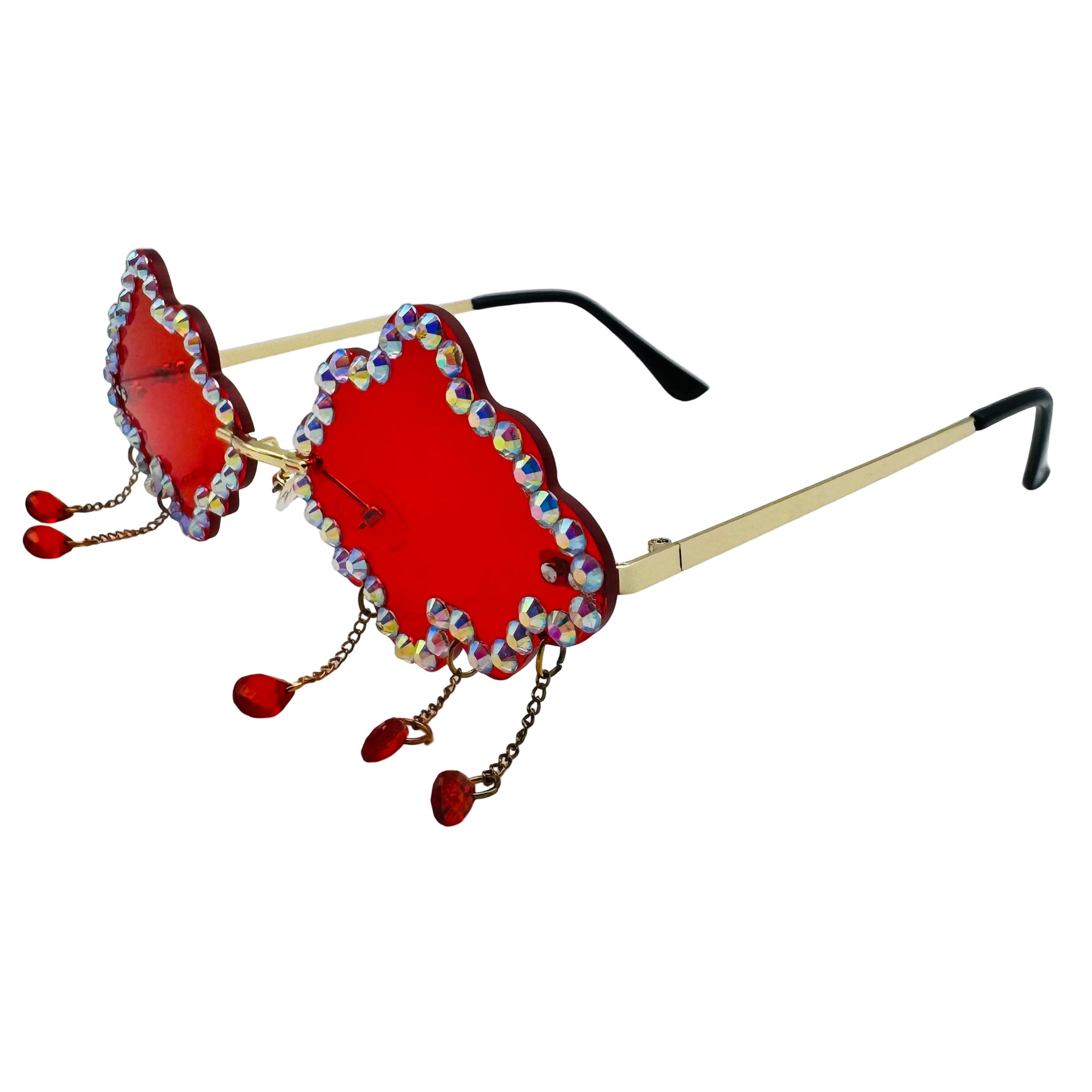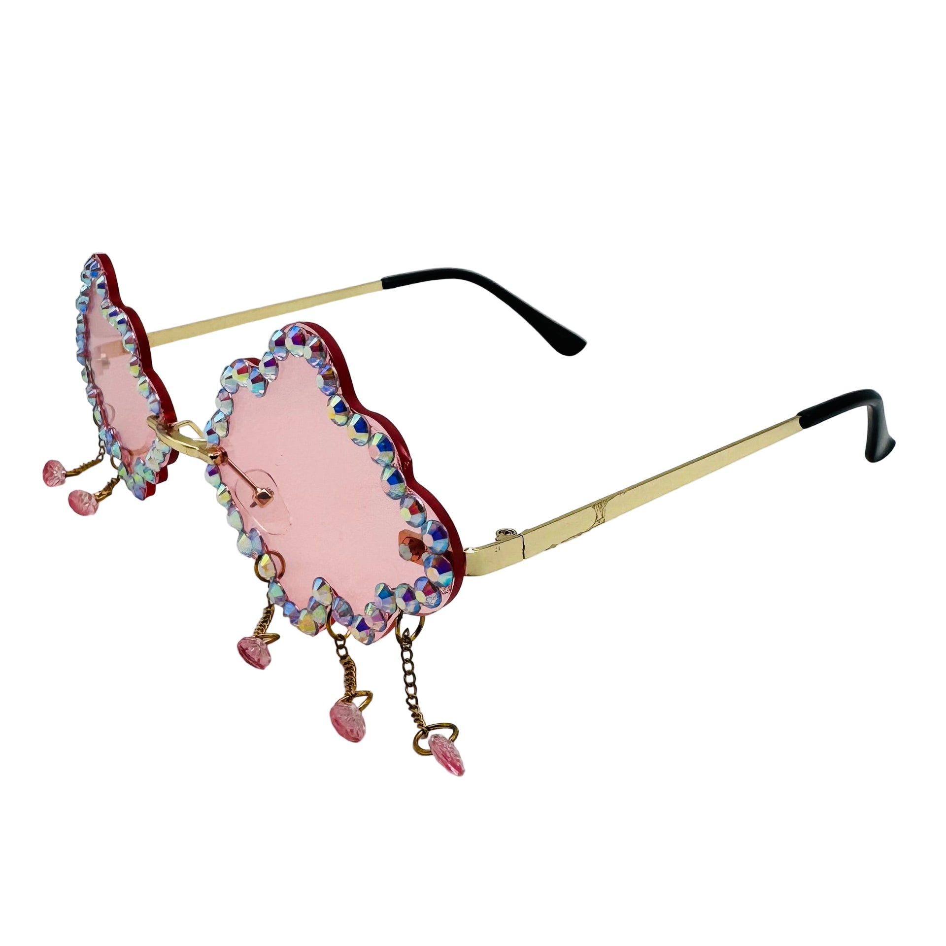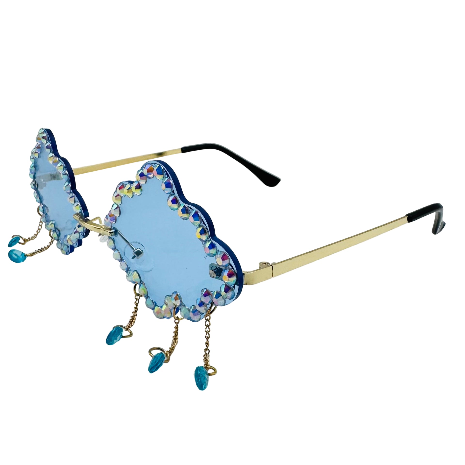 Bring a playful breeze to your style with these novelty cloud sunglasses, featuring fun raindrop accents and vibrant colors. The metal frame ensures sturdy wear, while adjustable nose pads make for a comfy fit. Plus, enjoy full 100% UV protection as you brighten up your day with these uniquely shaped shades.