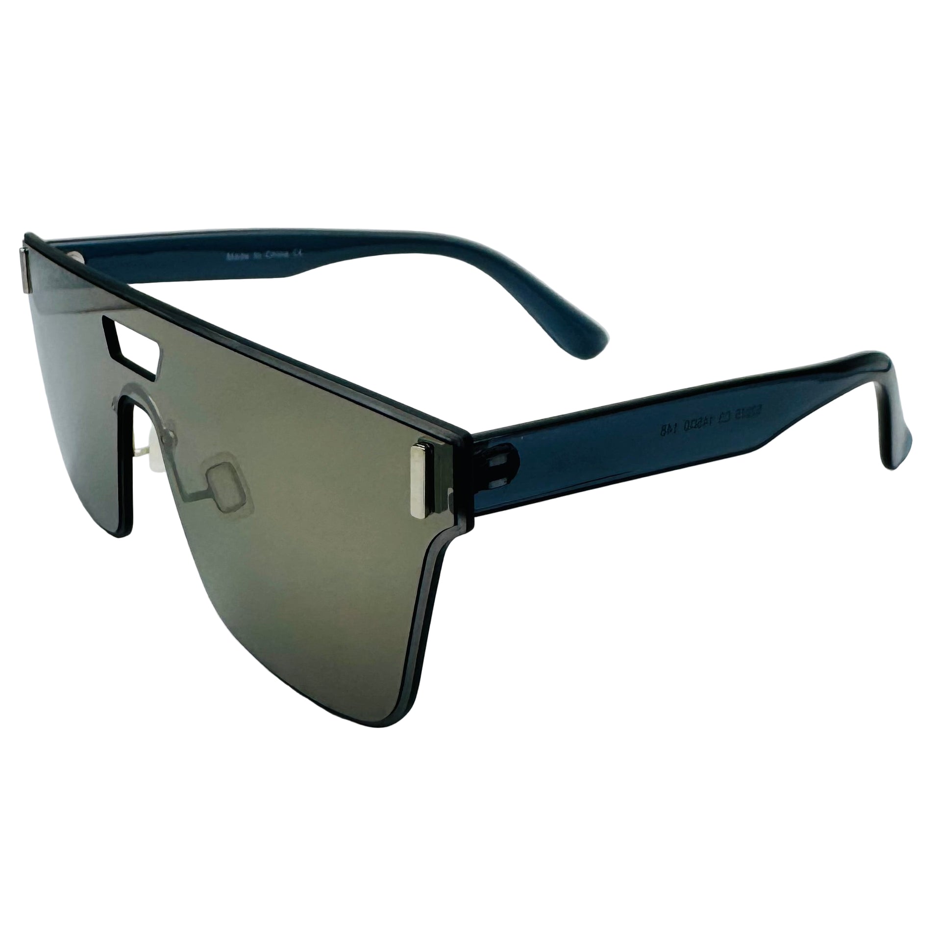 Command attention with the Midnight Shields, bold futuristic sunglasses built for statement-makers. Featuring a single oversized blue lens in a sleek shield design, these shades deliver full-face coverage with a sharp, modern edge. The frameless flat-top silhouette and geometric bridge cut-out give them a unique, fashion-forward look, while lightweight arms keep them comfortable for all-day wear. Perfect for festivals, nightlife, or anyone who wants to stand out from the crowd.