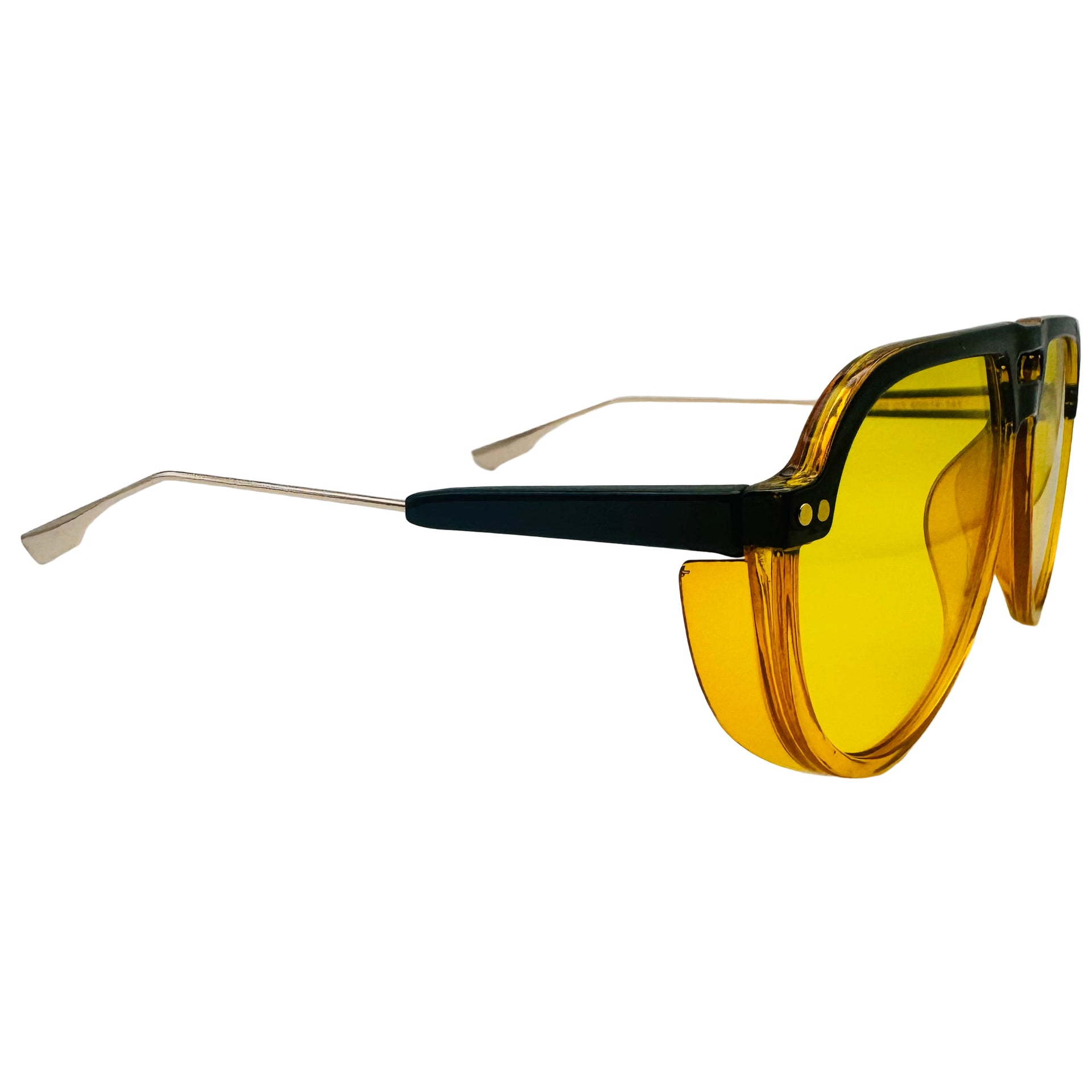 Step into the spotlight with the Skyline Aviator Sunglasses featuring side blinders for extra style and sun defense. These trendy, unisex shades sport vibrant color-filled lenses that deliver 100% UV protection, keeping your eyes cool and safe all day long. Perfect for those who love classic aviator vibes with a fun, edgy twist!