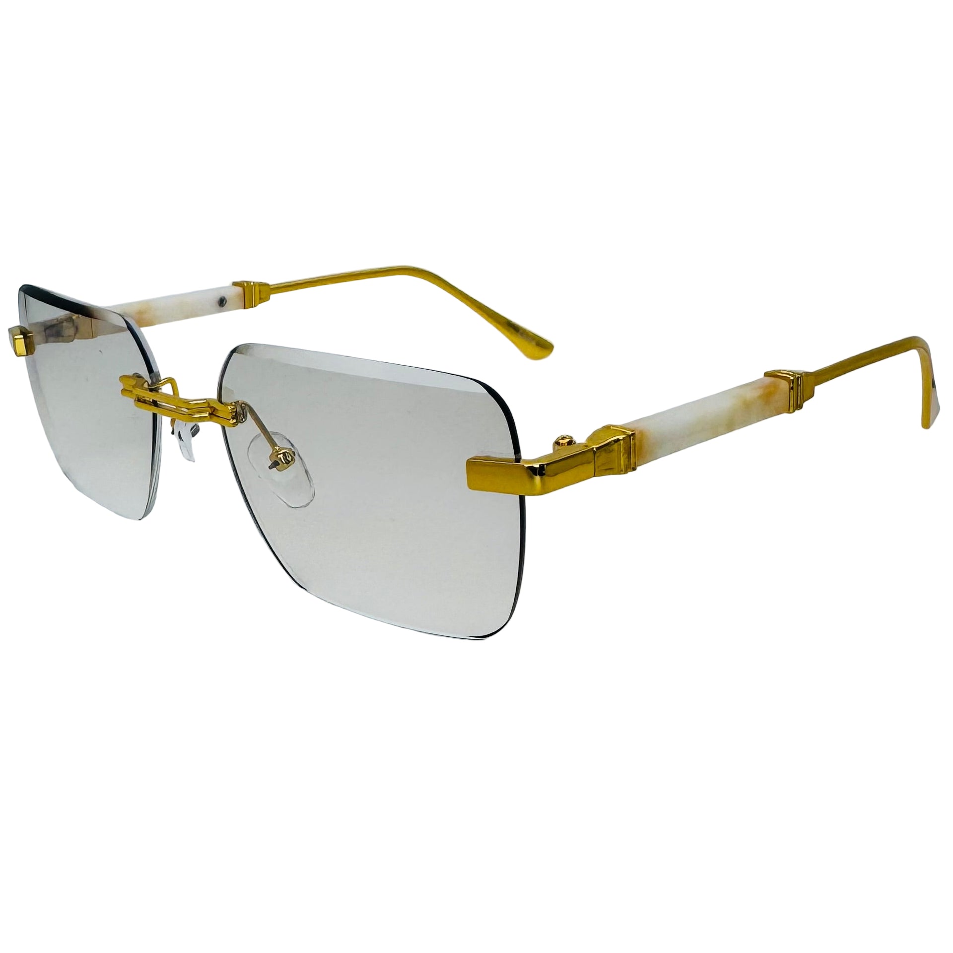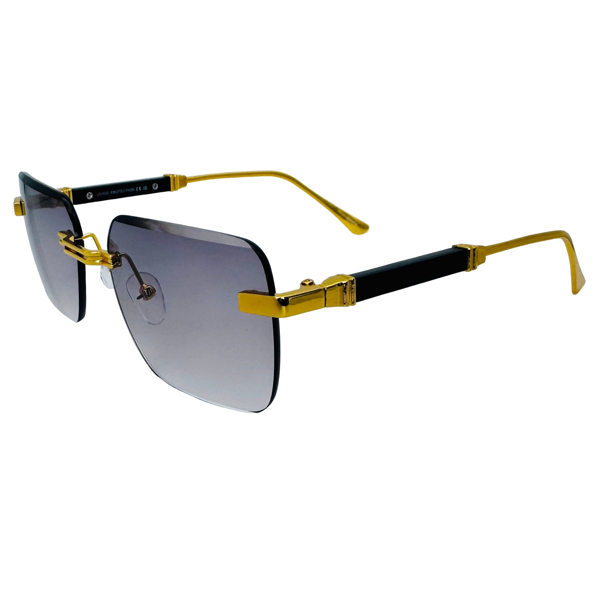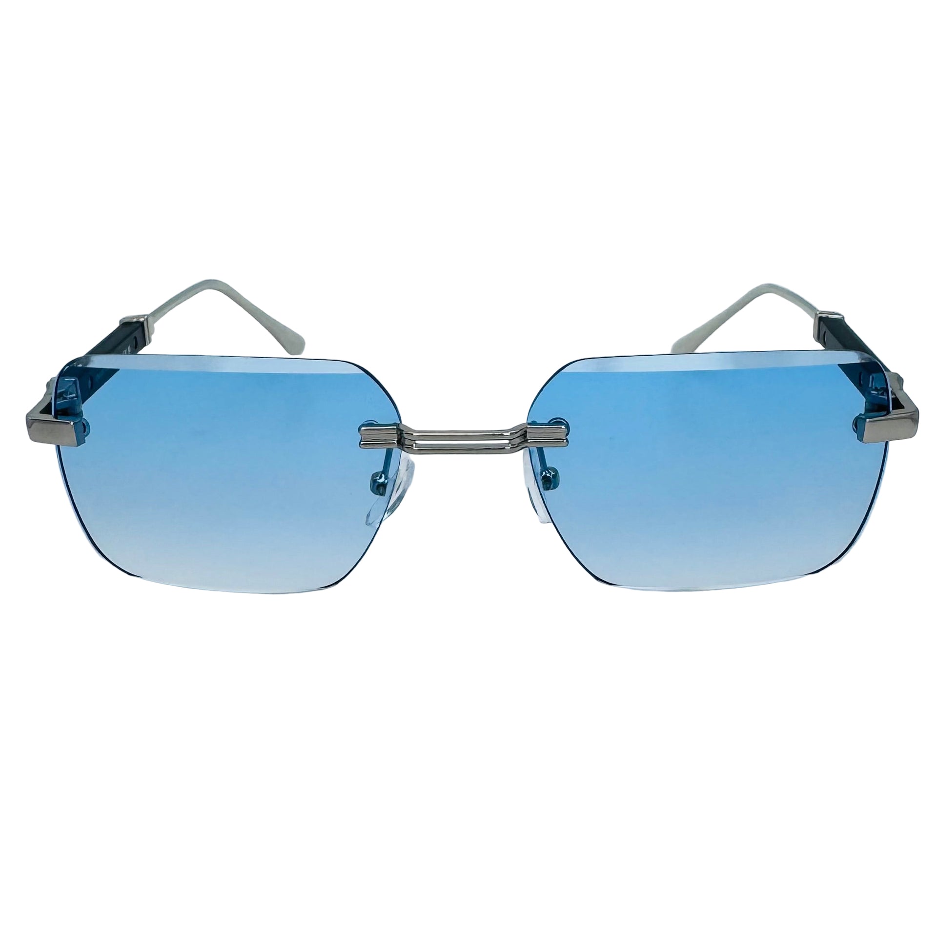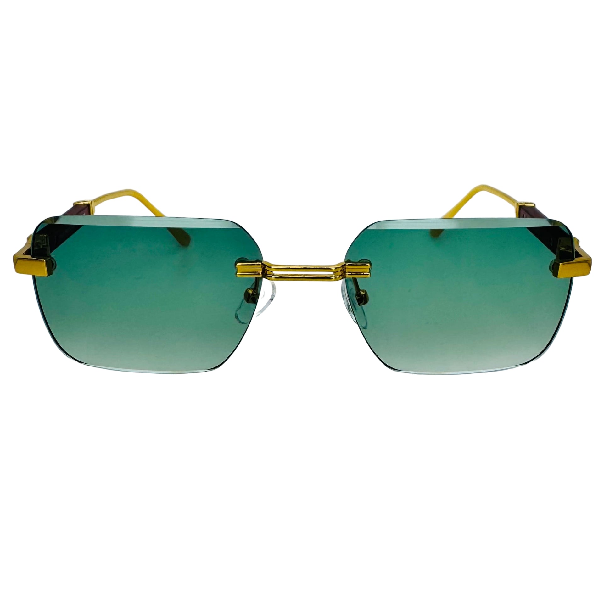 Step up your style game with The Vertex sunglasses! Featuring sleek rimless rectangle lenses and a lightweight metal frame, they offer 100% UV protection while keeping your look effortlessly cool. Luxe temple accents add a touch of glamour, and adjustable nose pads ensure a comfy fit for everyone. Perfectly unisex and ready to turn heads wherever you go.