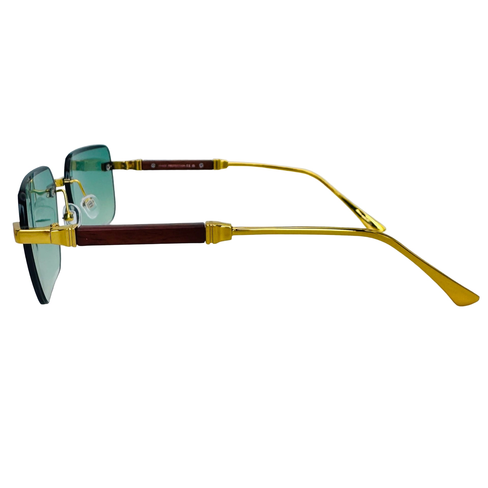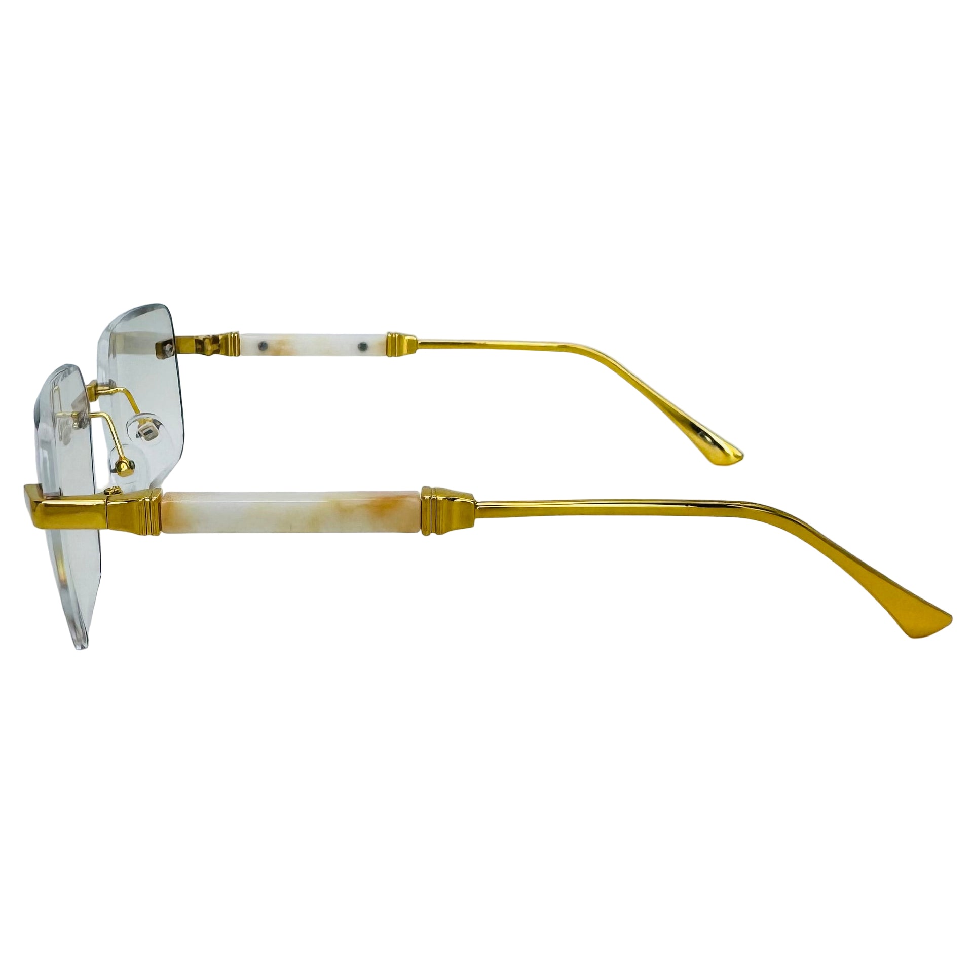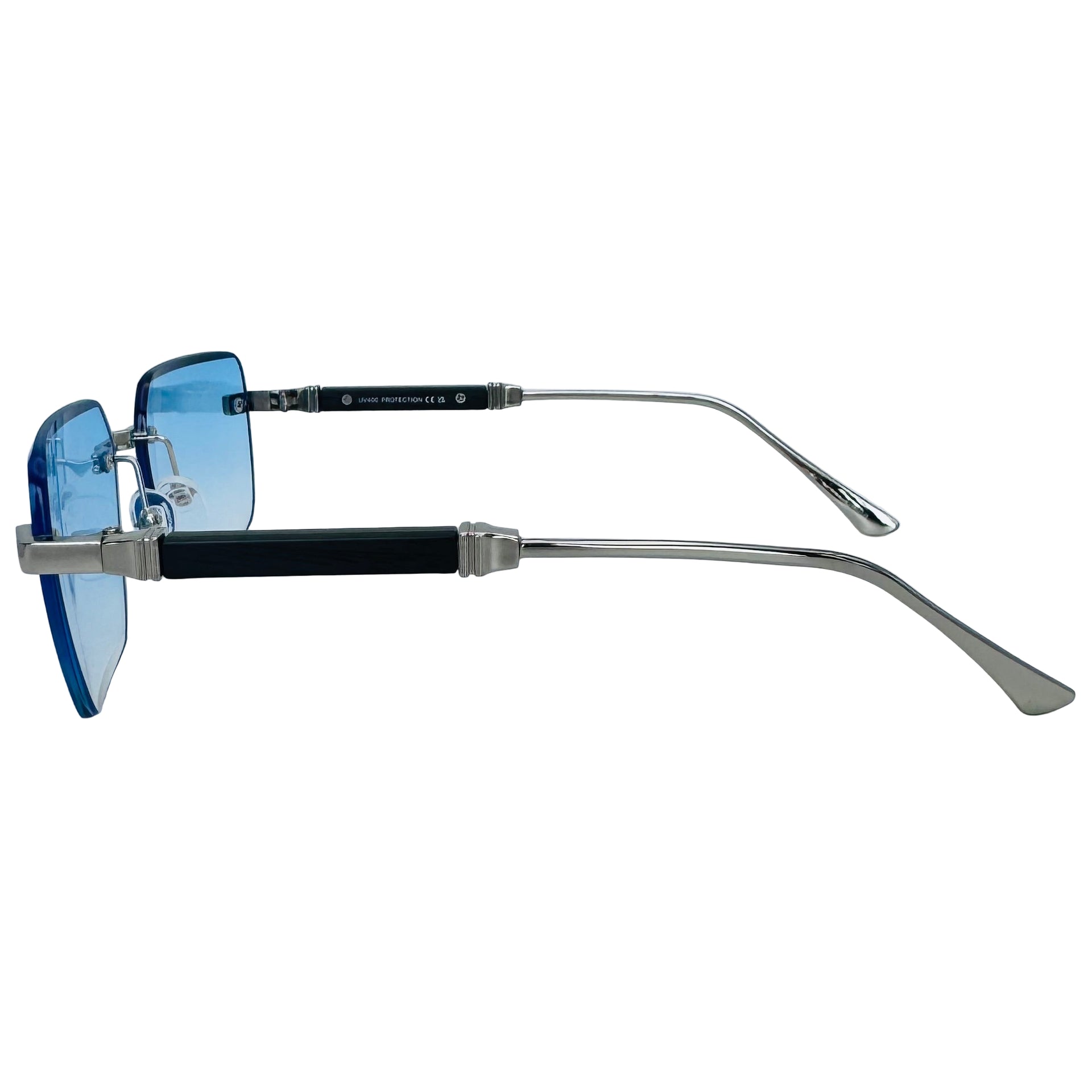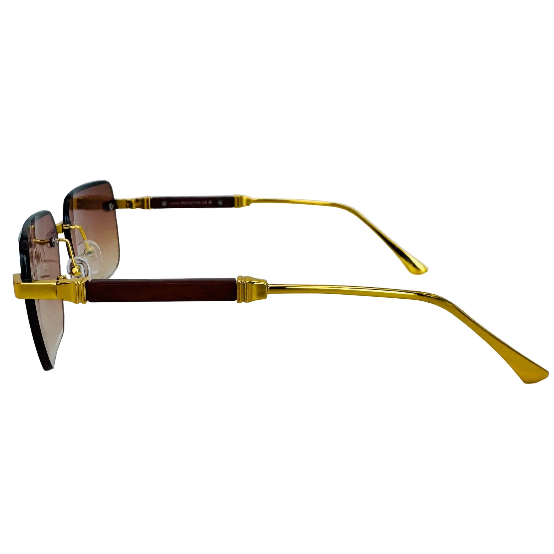 Step up your style game with The Vertex sunglasses! Featuring sleek rimless rectangle lenses and a lightweight metal frame, they offer 100% UV protection while keeping your look effortlessly cool. Luxe temple accents add a touch of glamour, and adjustable nose pads ensure a comfy fit for everyone. Perfectly unisex and ready to turn heads wherever you go.