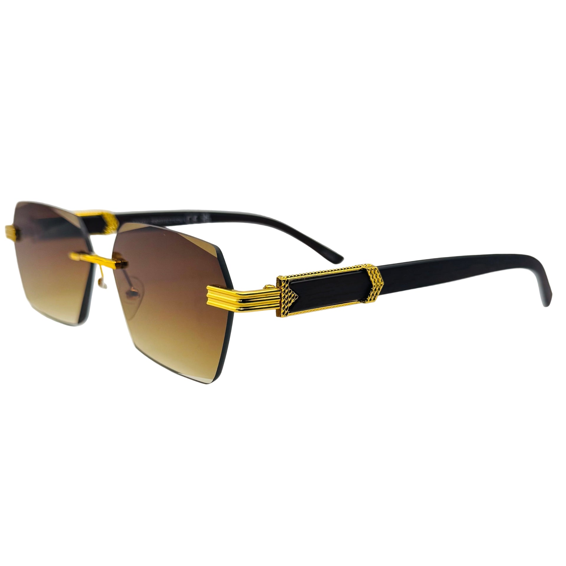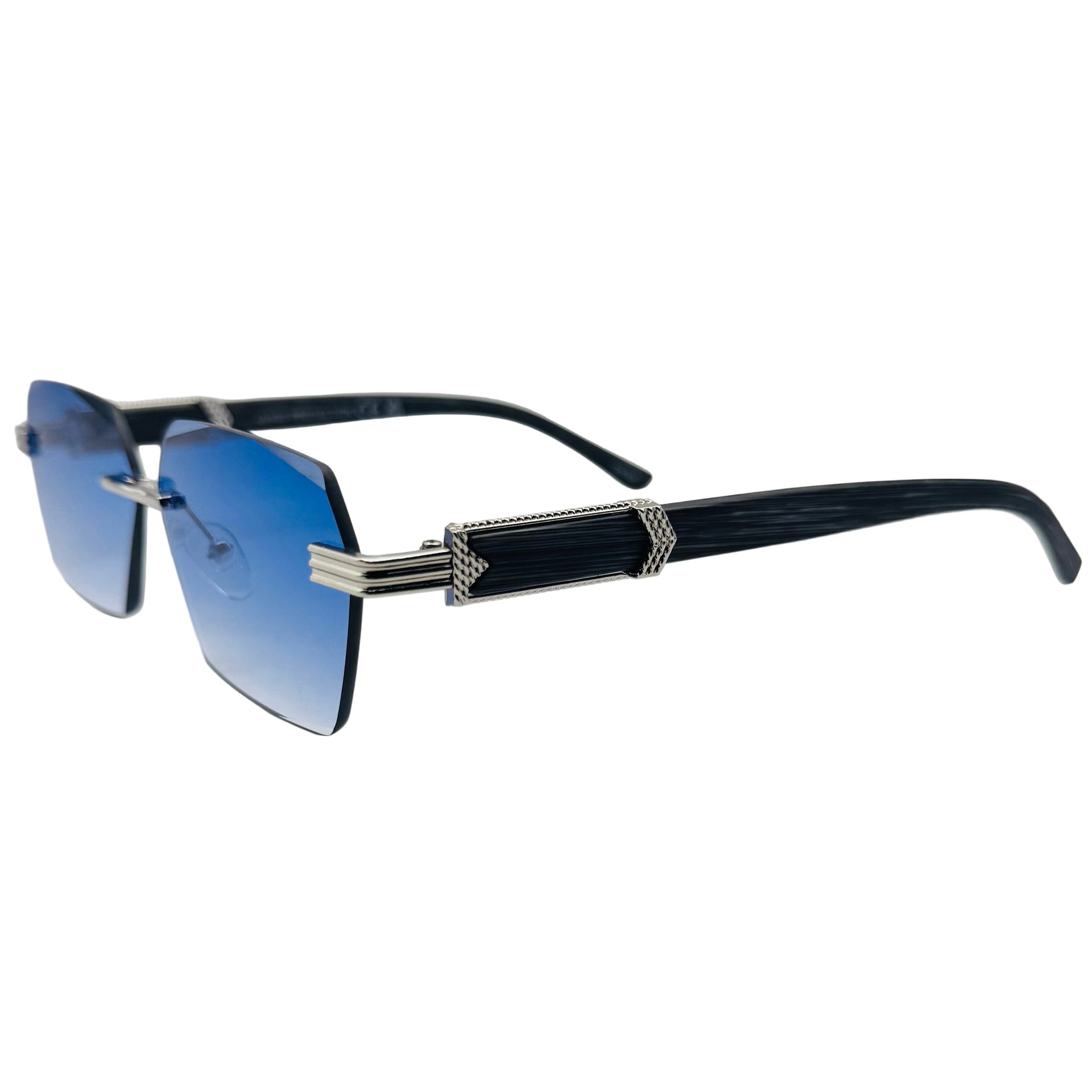 7056 | Halo - Luxe Rimless Rectangle Sunglasses with Metal Temples