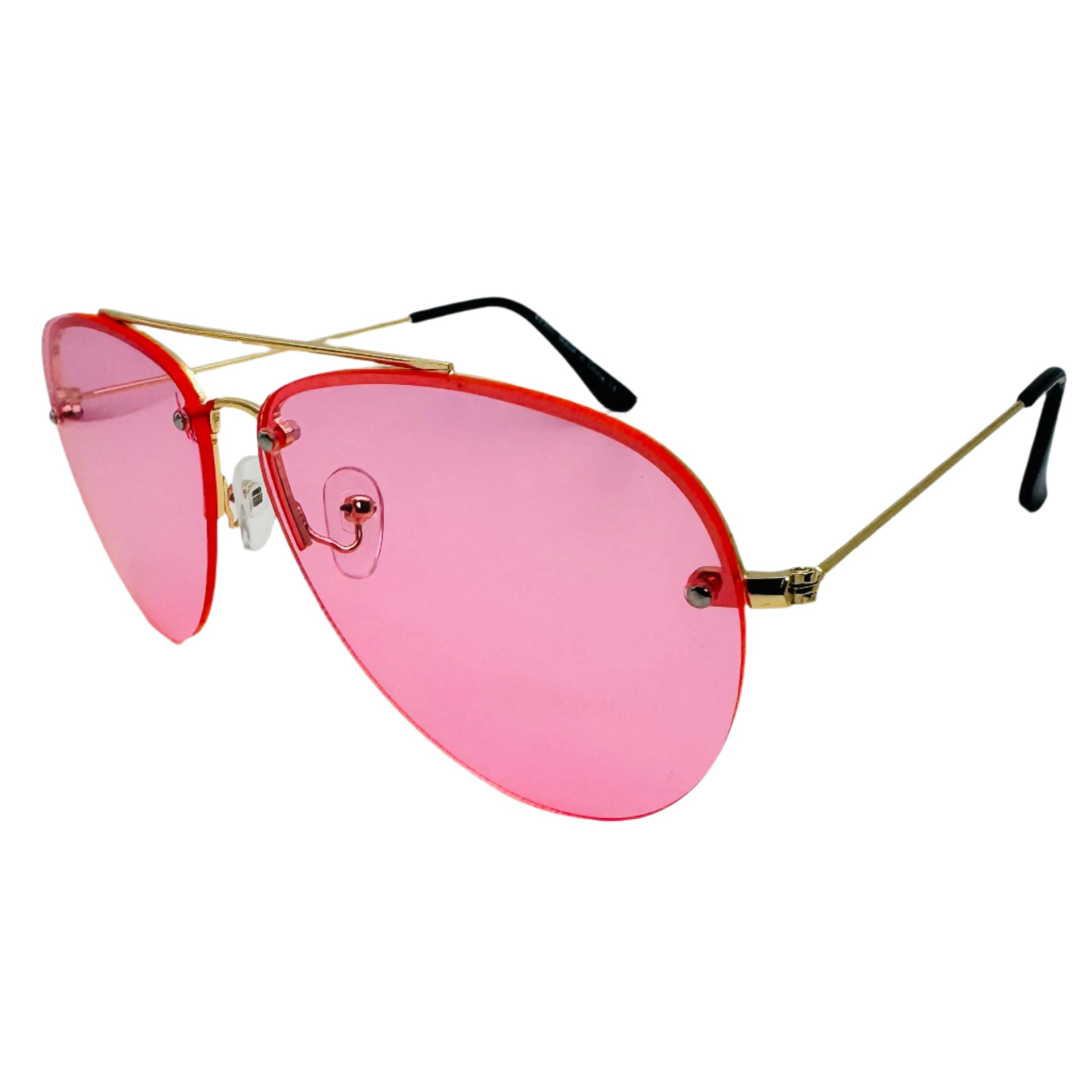 9149 (C) | Small Pink Rimless Aviator Sunglasses