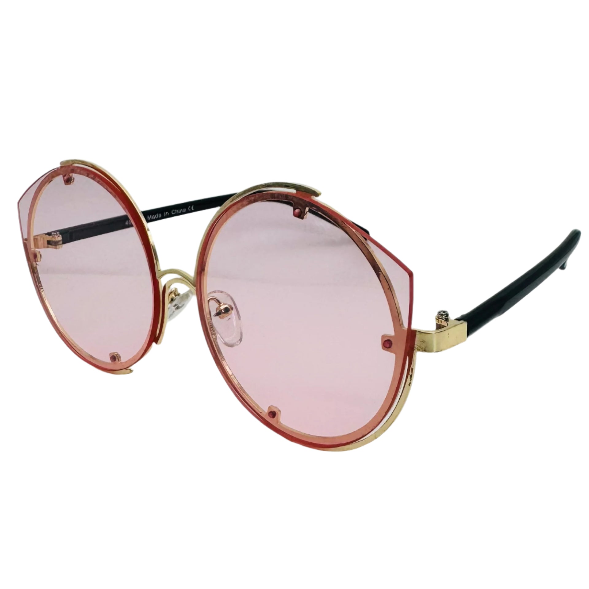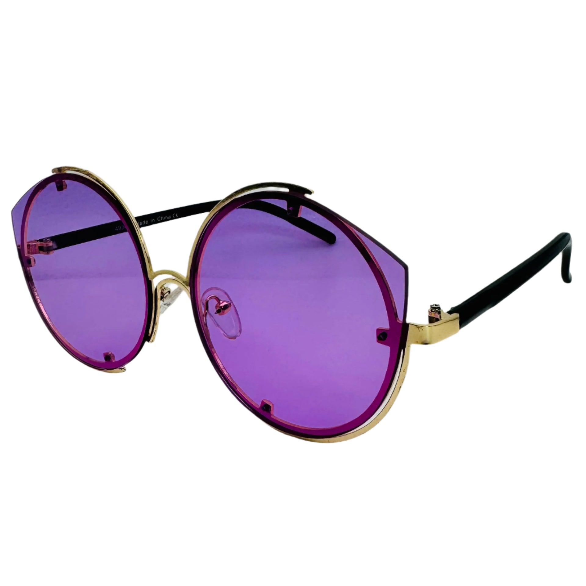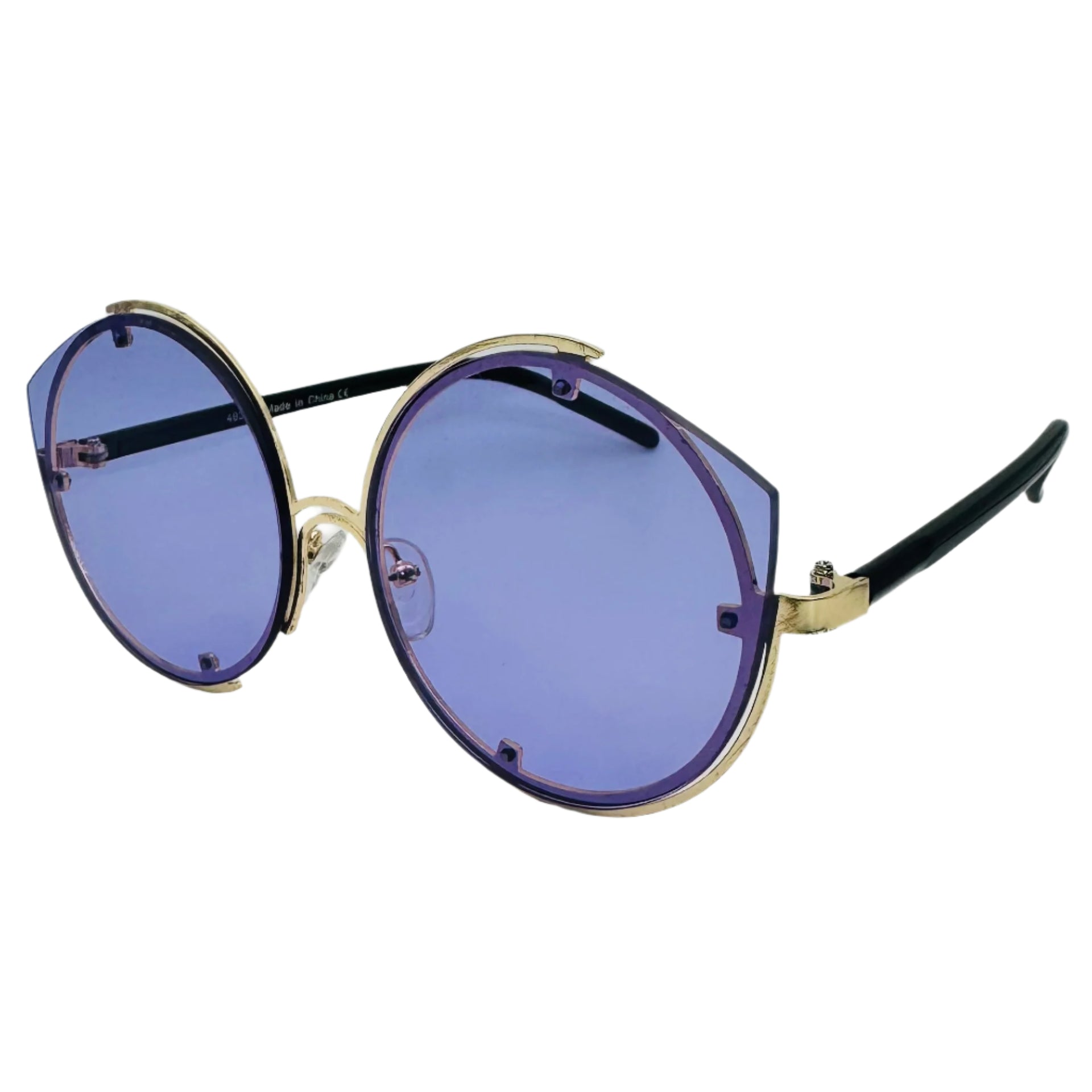 The round rimless lenses offer a sleek and modern look, while the metal frame and adjustable nose pads provide both durability and comfort. Enjoy 100% UV protection with these must-have sunglasses.