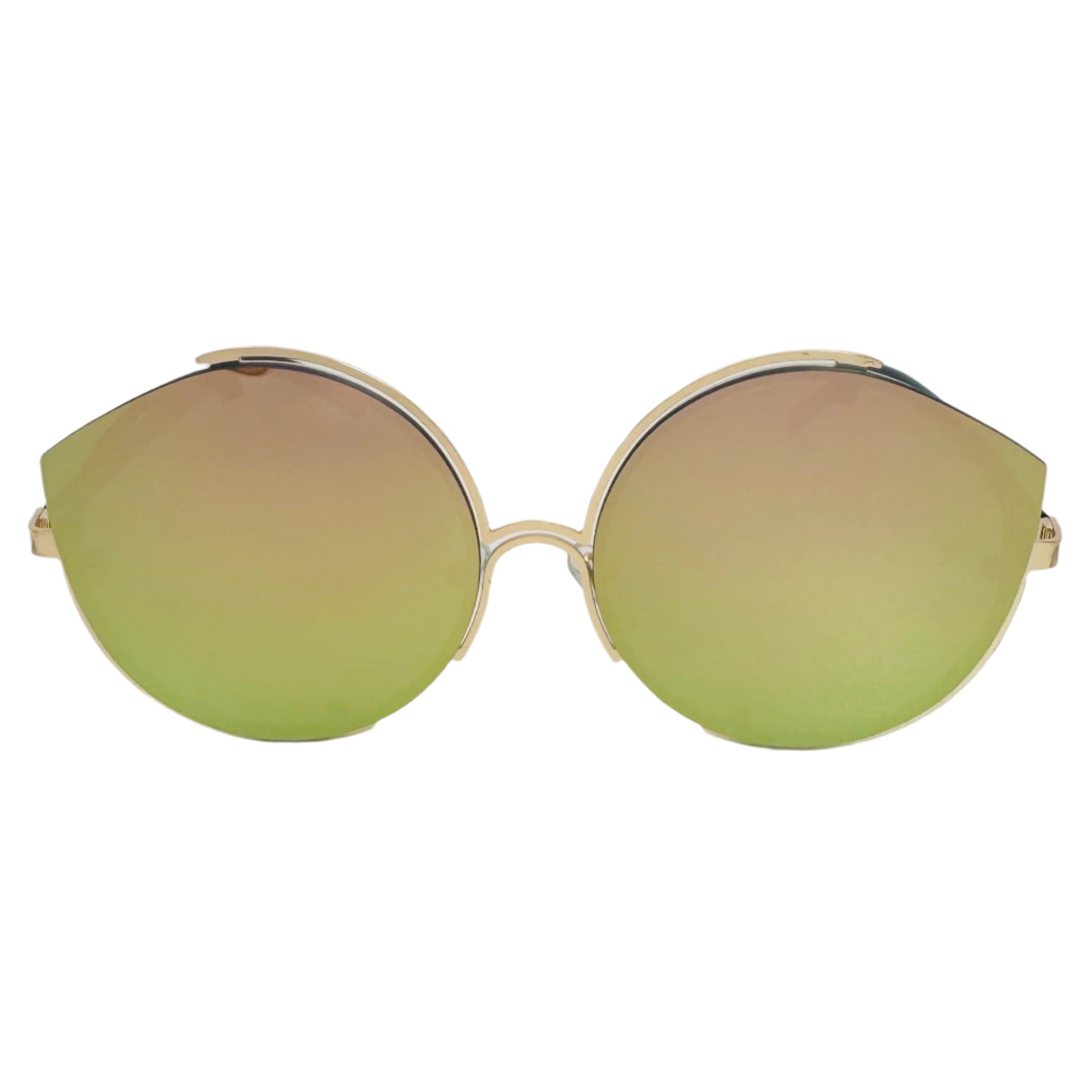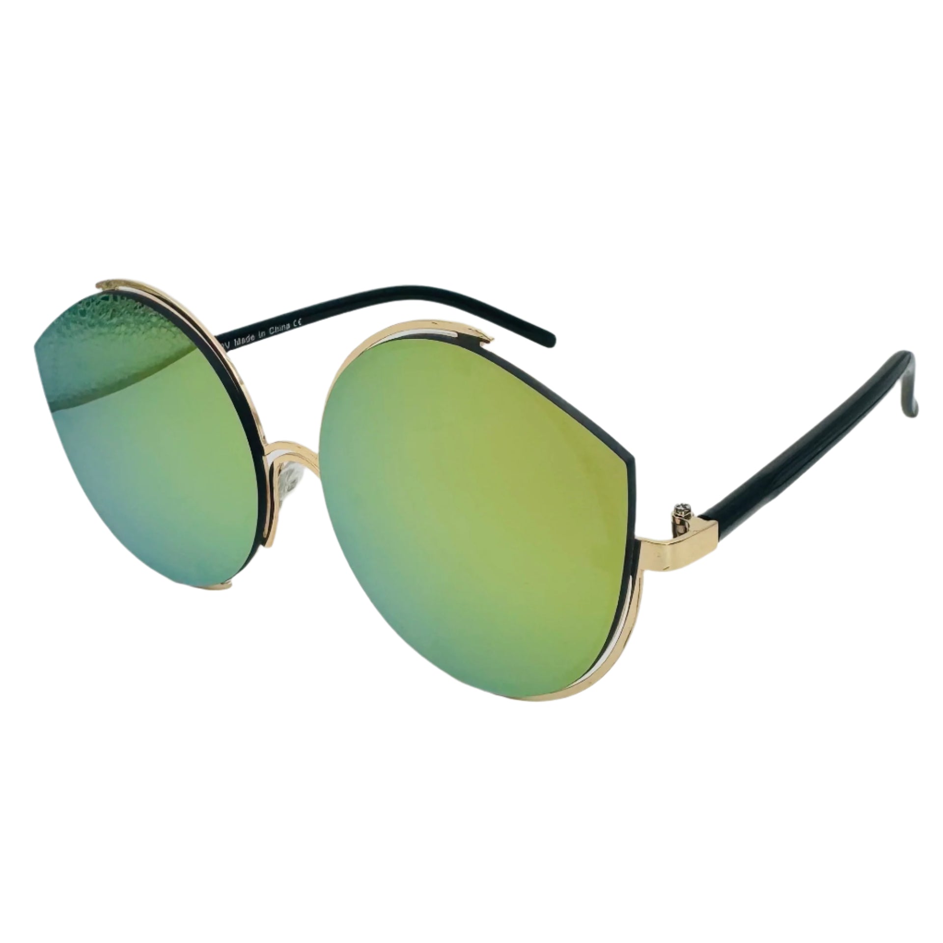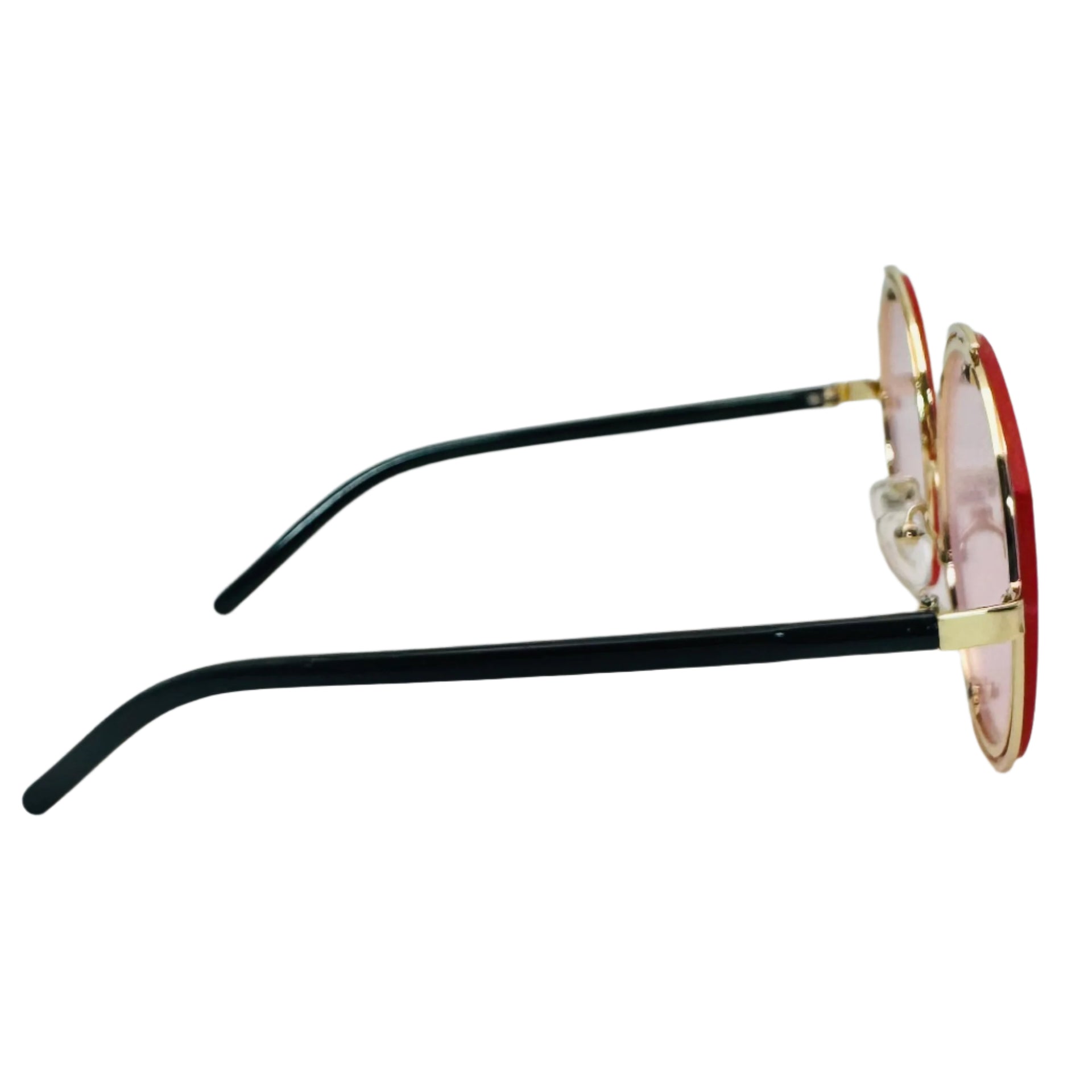 The round rimless lenses offer a sleek and modern look, while the metal frame and adjustable nose pads provide both durability and comfort. Enjoy 100% UV protection with these must-have sunglasses.
