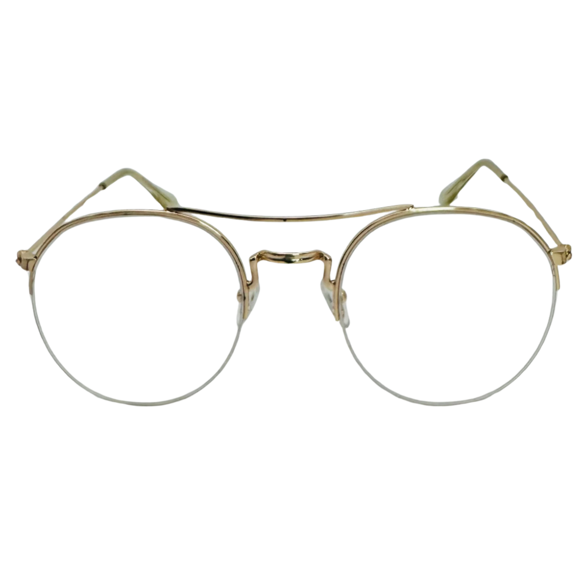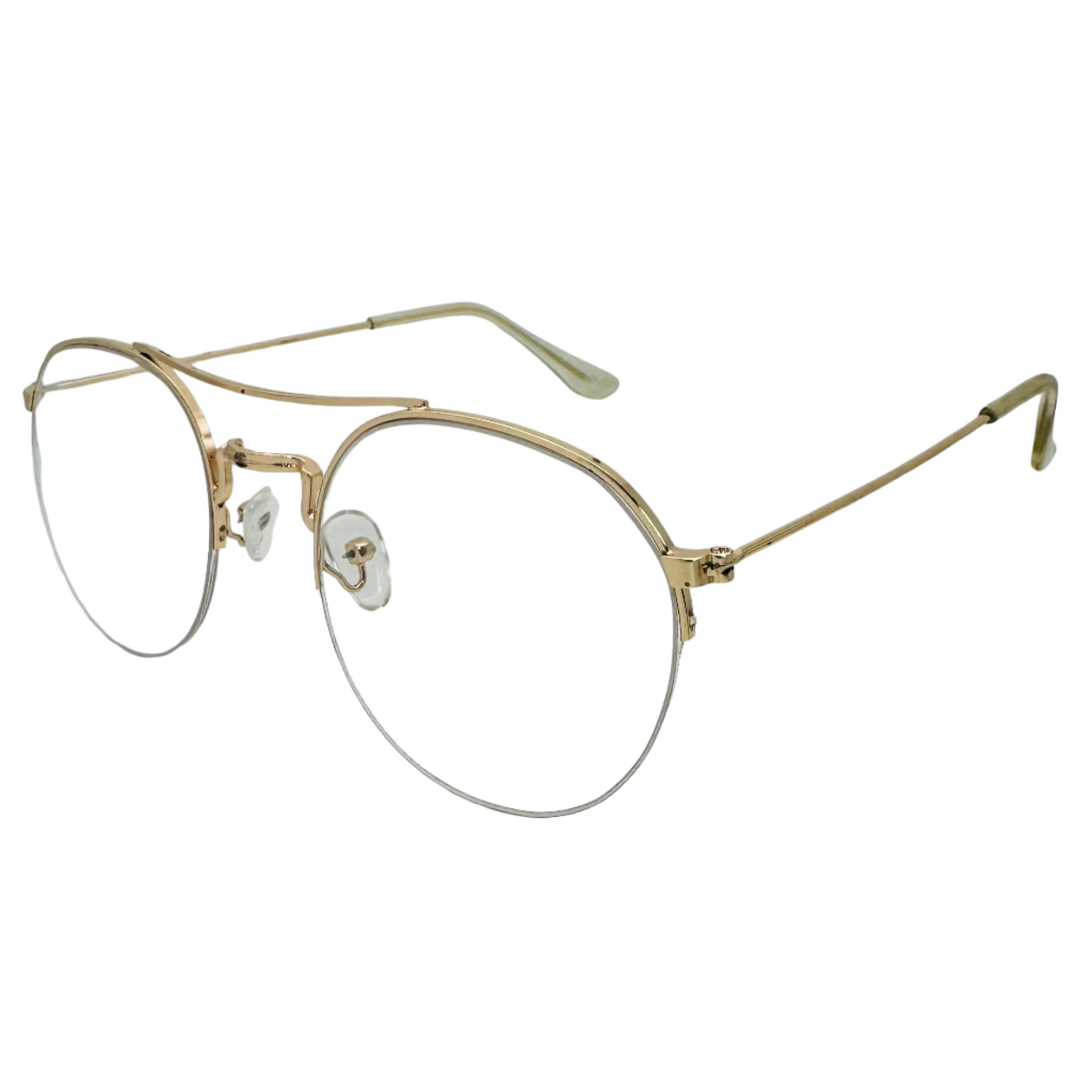 9164 (C) | Gold Round Semi-Rimless Clear Lens Glasses - Non Prescription