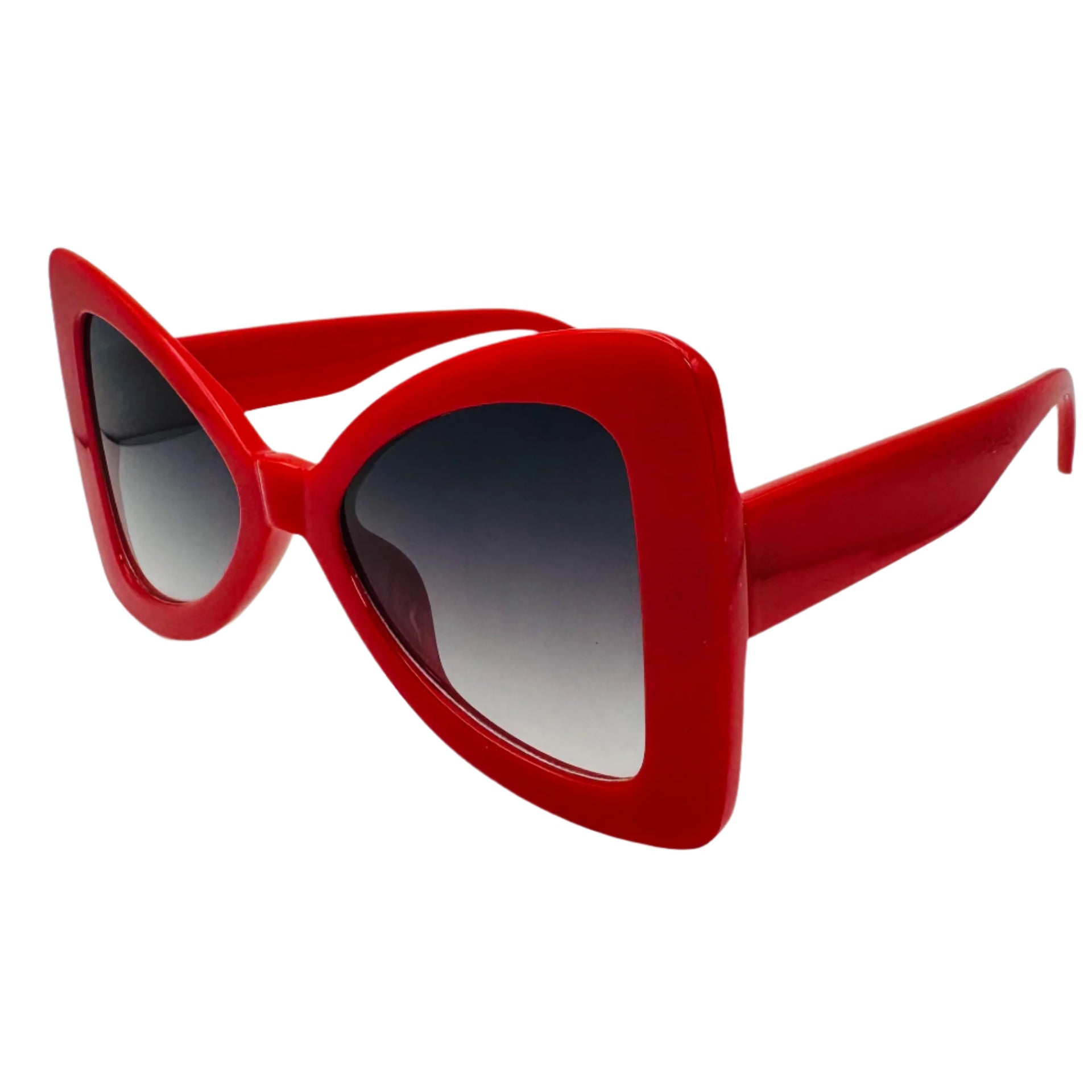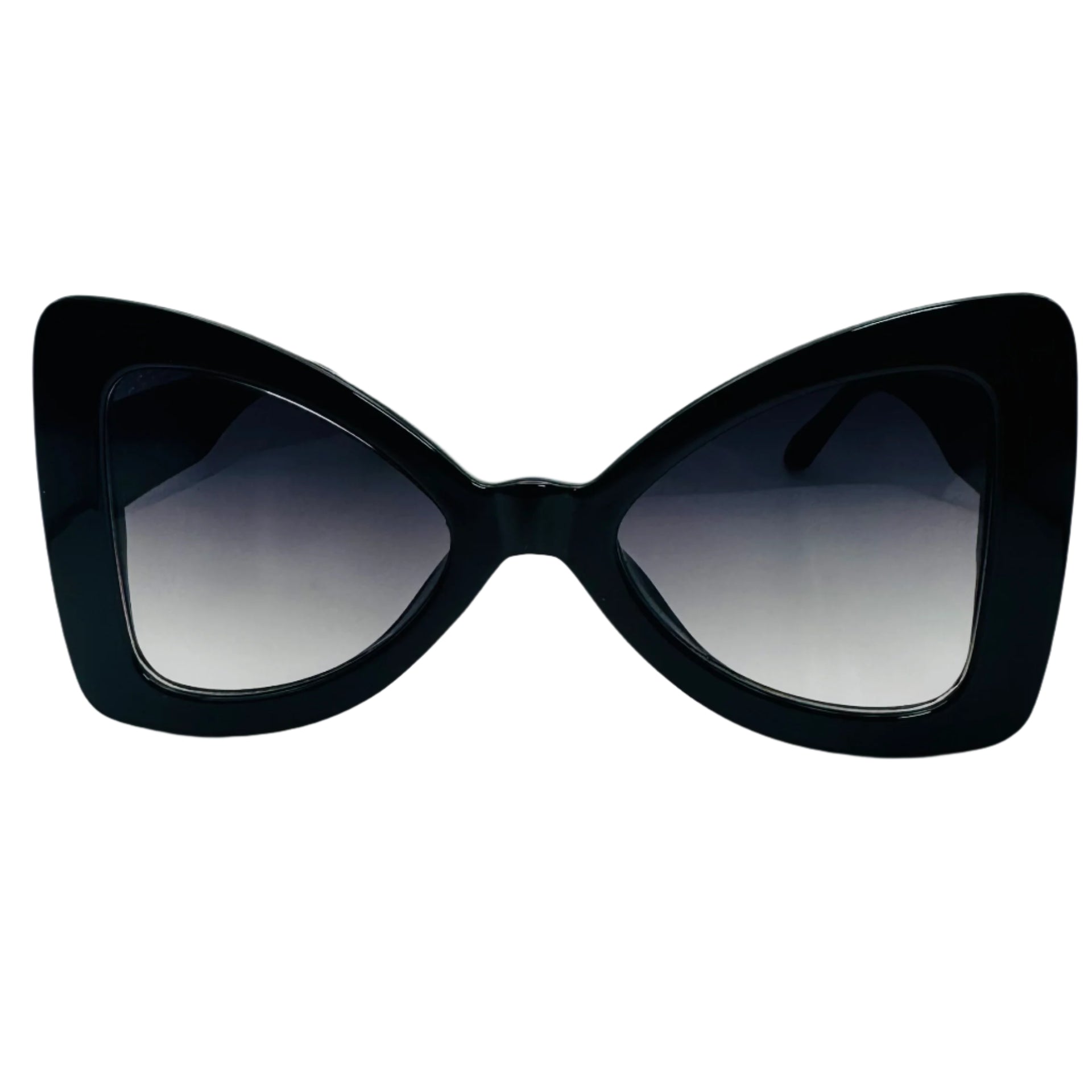 With a playful bowtie style and thick frame, these sunglasses add a touch of cuteness to any outfit. The gradient tinted lenses not only provide stylish flair but also protect your eyes. Elevate your look with these must-have sunglasses.